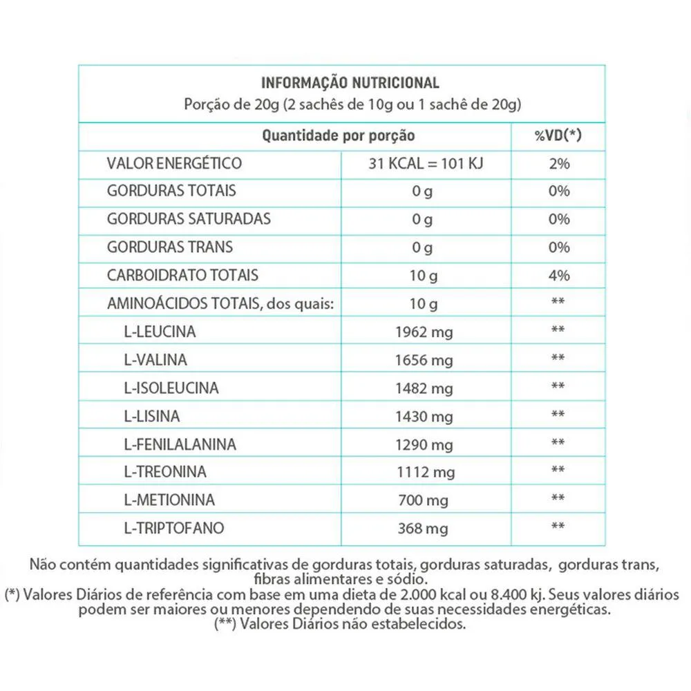- Formulação com 8 aminoácidos essenciais.