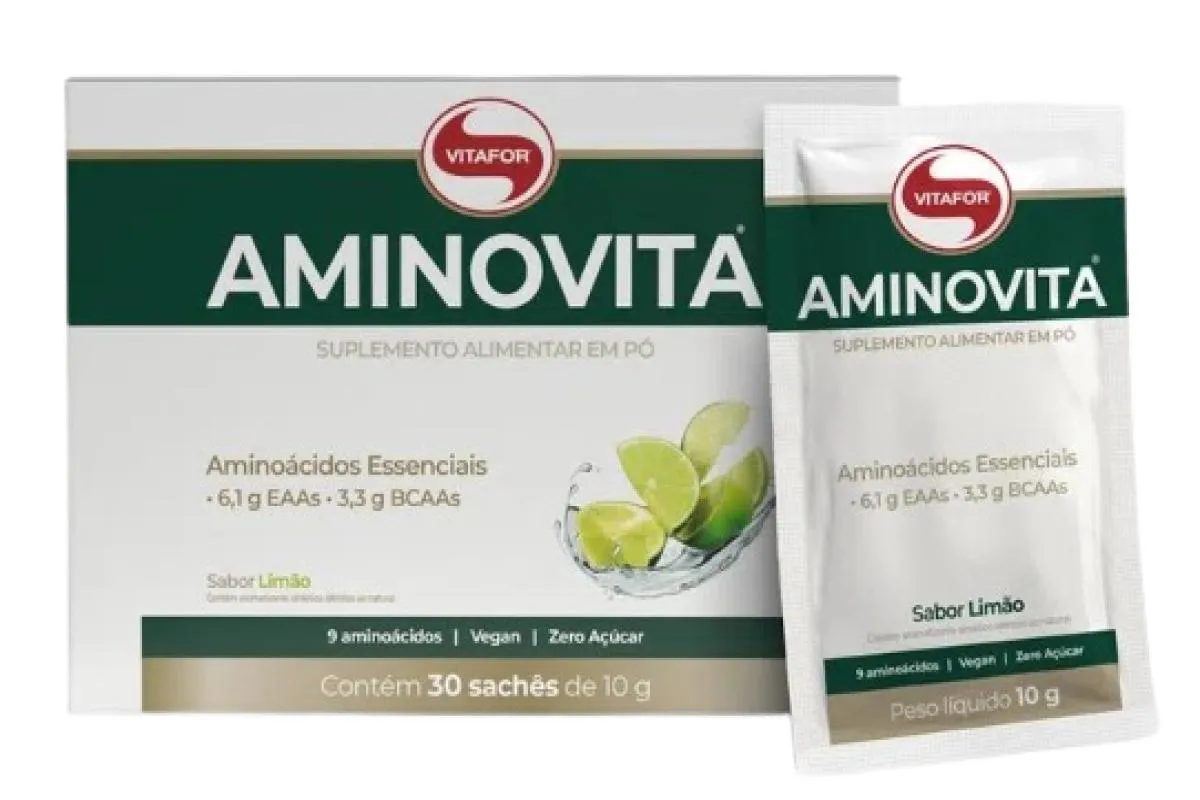 AMINOVITA 9 AMINOáCIDOS VEGETAIS LIMãO 10G VITAFOR 30 SACHêS