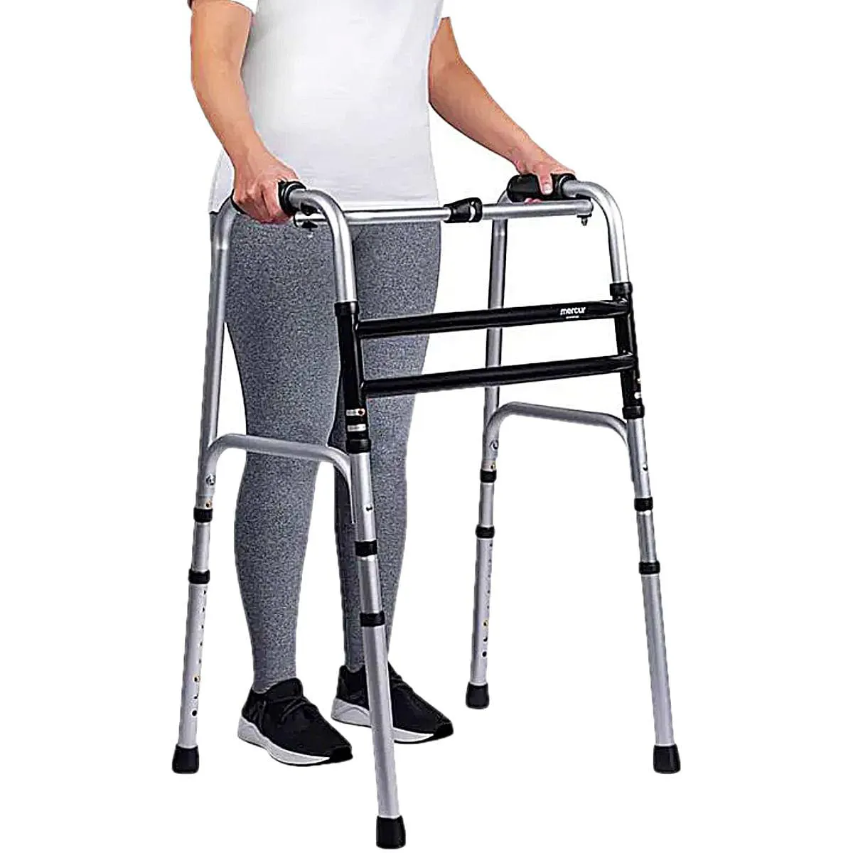 Referência: MER-B061548-PT Tamanho: Único ajustável Cor: Prata Desmontável: Quando desmontado ocupa um espaço de 52 cm x 52 cm x 11 cm Resistência: Suportar até 130 kg Altura mínima: 79 cm Altura máxima 96 cm ANVISA 81284250025 O uso de andadores, incluindo o ajuste de altura e a escolha entre os modos fixo ou articulado, deve ser orientado por um profissional da saúde.Não use o andador em escadas e cuide com pisos molhados, portas, móveis ou objetos no chão.