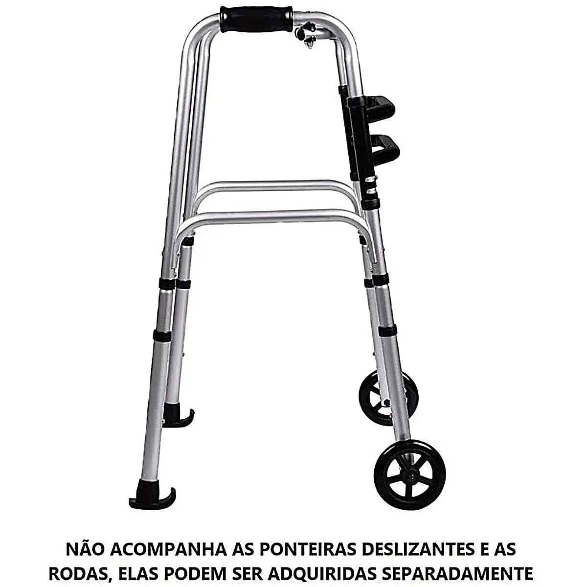 Certifique-se de que as ponteiras estejam bem encaixadas e não utilize o andador sem as ponteiras adequadas.