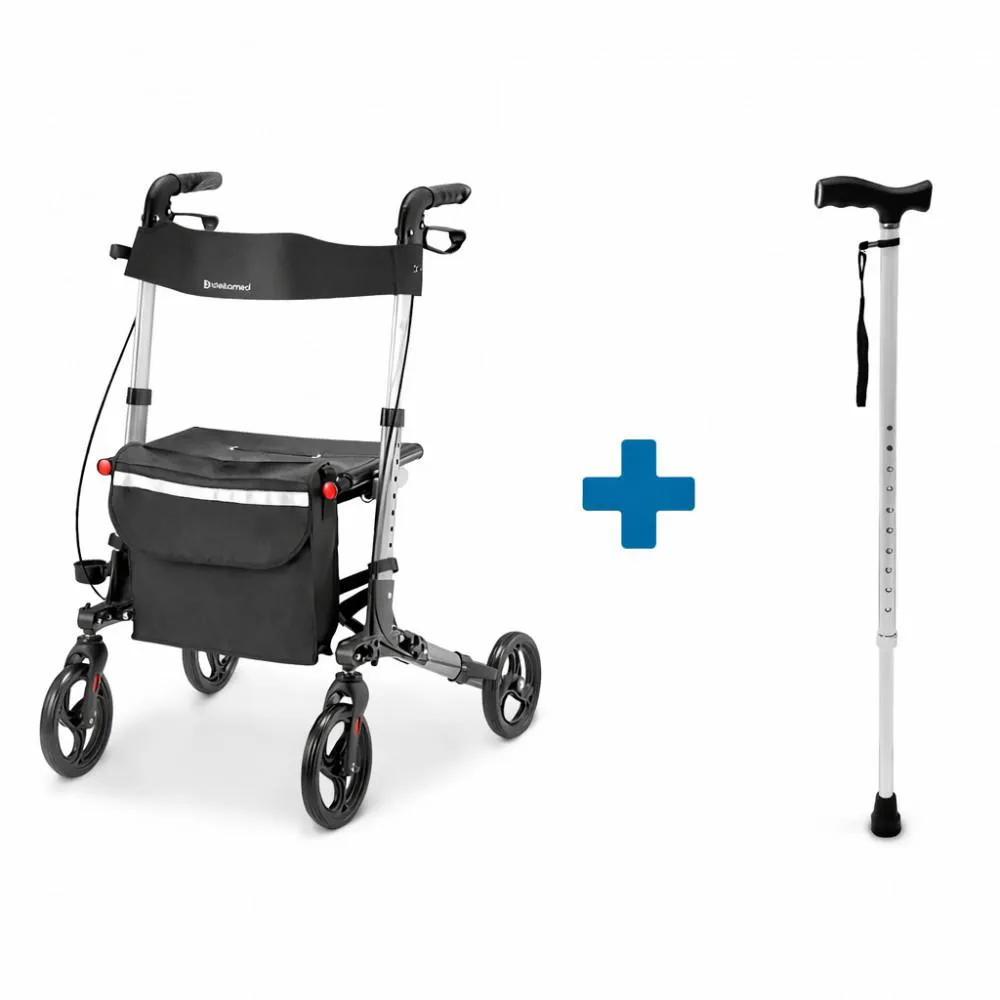 Andador Compacto Até 135 Kg D14 Dellamed + Bengala T Bastão Até 90 Kg D8 Dellamed Alumínio