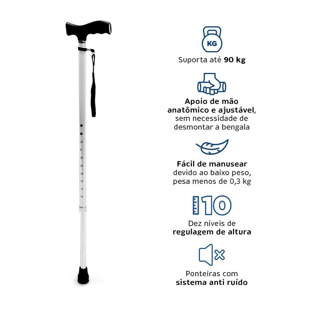 Bengala T Bastão com Altura Regulável até 90 Kg D8 Dellamed