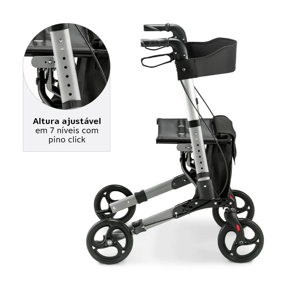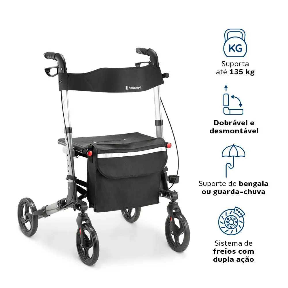 Andador de Alumínio Compacto 4 Rodas D14 Dellamed - Até 135 Kg