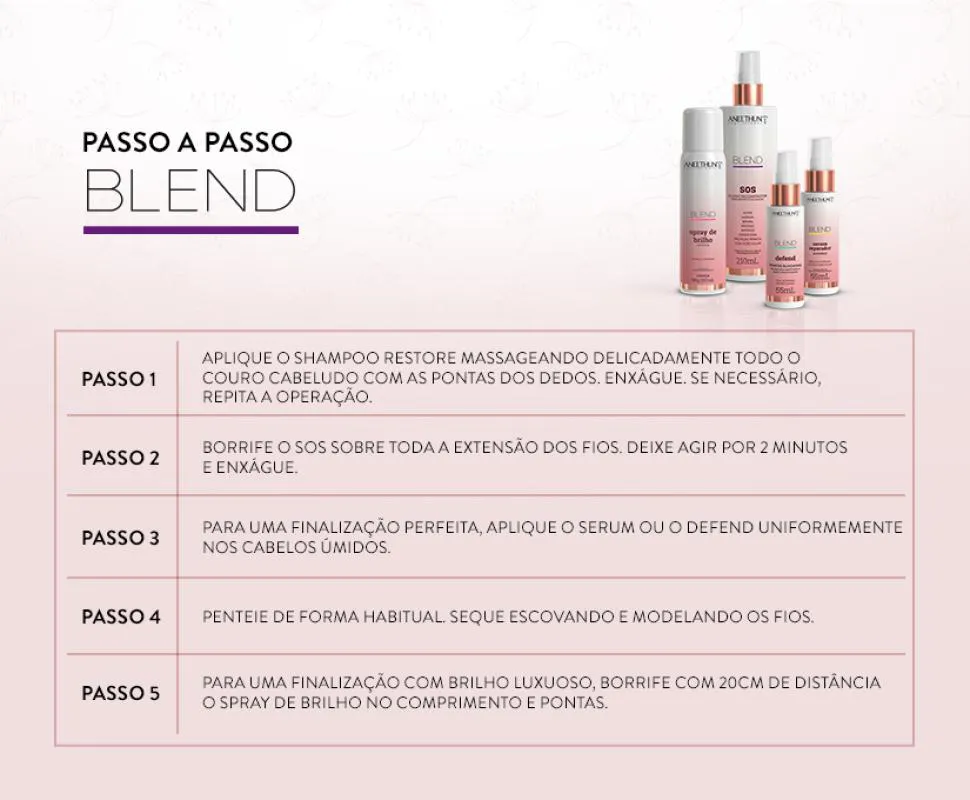 Fluído reconstrutor desenvolvido para cabelos danificados, Aneethun Blend SOS restaura a estrutura interna dos fios, preenchendo as áreas fragilizadas. Sua fórmula com Óleo de Coco, silicones de alta performance e concentrado de lipídios promove maciez, toque aveludado e proteção antioxidante, prevenindo o envelhecimento capilar. Benefícios:- Reconstrói e fortalece a fibra capilar danificada