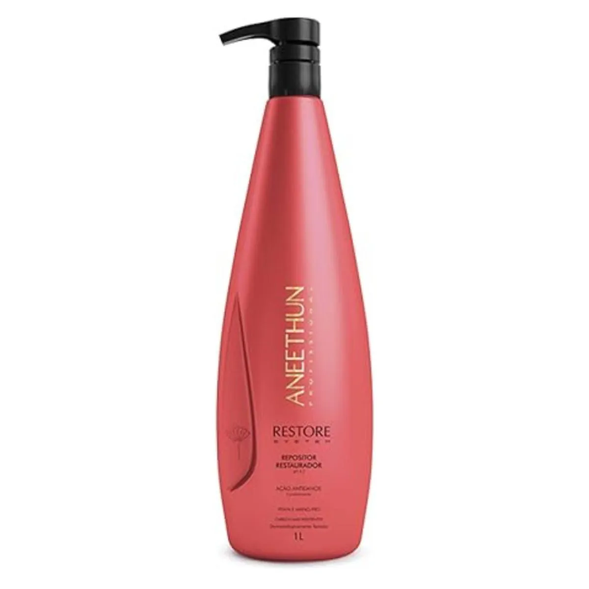 Aneethun Restore System shampoo Restaurador Anti Danos 1L - Aneethun Shampoo Restore Reparação de Danos 1L: A linha Restore, com ação antidanos, permite realizar as técnicas de coloração, descoloração e alisamentos com segurança, devido a sua exclusiva tecnologia, que fortalece as pontes proteicas, repõe lipídios e massa capilar, preservando a estrutura e a integridade dos fios. Como Usar: Aplique sobre os cabelos úmidos, massageando suavemente o couro cabeludo e enxágue abundantemente. Aneethun Restore System Repositor Restore – 1 Litro Linha restore system A linha restore, com ação antidanos, permite realizar as técnicas de coloração, descoloração e alisamentos com segurança, devido a sua exclusiva tecnologia, que fortalece as pontes proteicas, repõe lipídios e massa capilar, preservando a estrutura e a integridade dos fios. Aneethun repositor restore Ideal para ser usado logo após o processo de descoloração, coloração ou alisamento. Oferece desembaraço imediato, devolve brilho, elasticidade e resistência aos cabelos. Categoria: Tratamento Resultados esperados: Cabelos resistentes saudáveis Ativos Amino-pro: composto por uma fórmula exclusiva que atua na fibra capilar, unindo-se às pontes proteicas, as tornando mais resistentes para passar pela agressão química. Além de restaurar as ligações danificadas e repor lipídios e massa capilar, preservando a integridade dos fios. Sua ação antidanos mantém a saúde do cabelo antes, durante e após os processos químicos. Pitaya: potente ação anti-oxidante, que previne o envelhecimento e o desbotamento das cores nos fios, pois é rica em vitamina c e e. Diferenciais - protege os fios de forma intensa durante os processos químicos; - alto poder de reconstrução; - aumenta a densidade dos fios danificados; - restaura a força tensora dos cabelos e aumenta a sua resistência a rupturas; - intenso poder antioxidante; - indicado para todos os tipos de química; - exclusiva tecnologia, que fortalece as pontes proteicas, alé