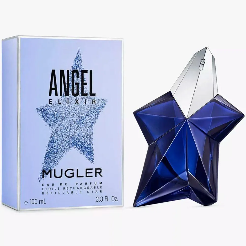 A assinatura amadeirada-floral gourmand do Elixir reinventa o que torna Angel tão único. Imagine uma Via Láctea floral capturada no icônico frasco em forma de estrela de Mugler, transformada em um cativante azul profundo.