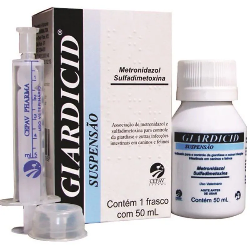 Quais as apresentações do Antibiótico Giardicid Suspensão para Cachorros e Gatos.