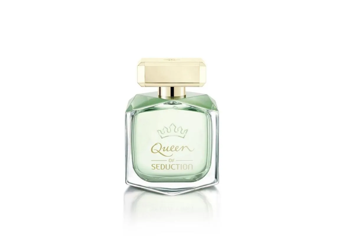 Com linhas angulosas e elegantes Queen of Seduction, possui o frasco em forma de joia, atrai todos os olhares. Uma tonalidade de verde água dá um toque de frescor a um design com forte personalidade que revela um toque feminino e sofisticado com o dourado em sua tampa.
