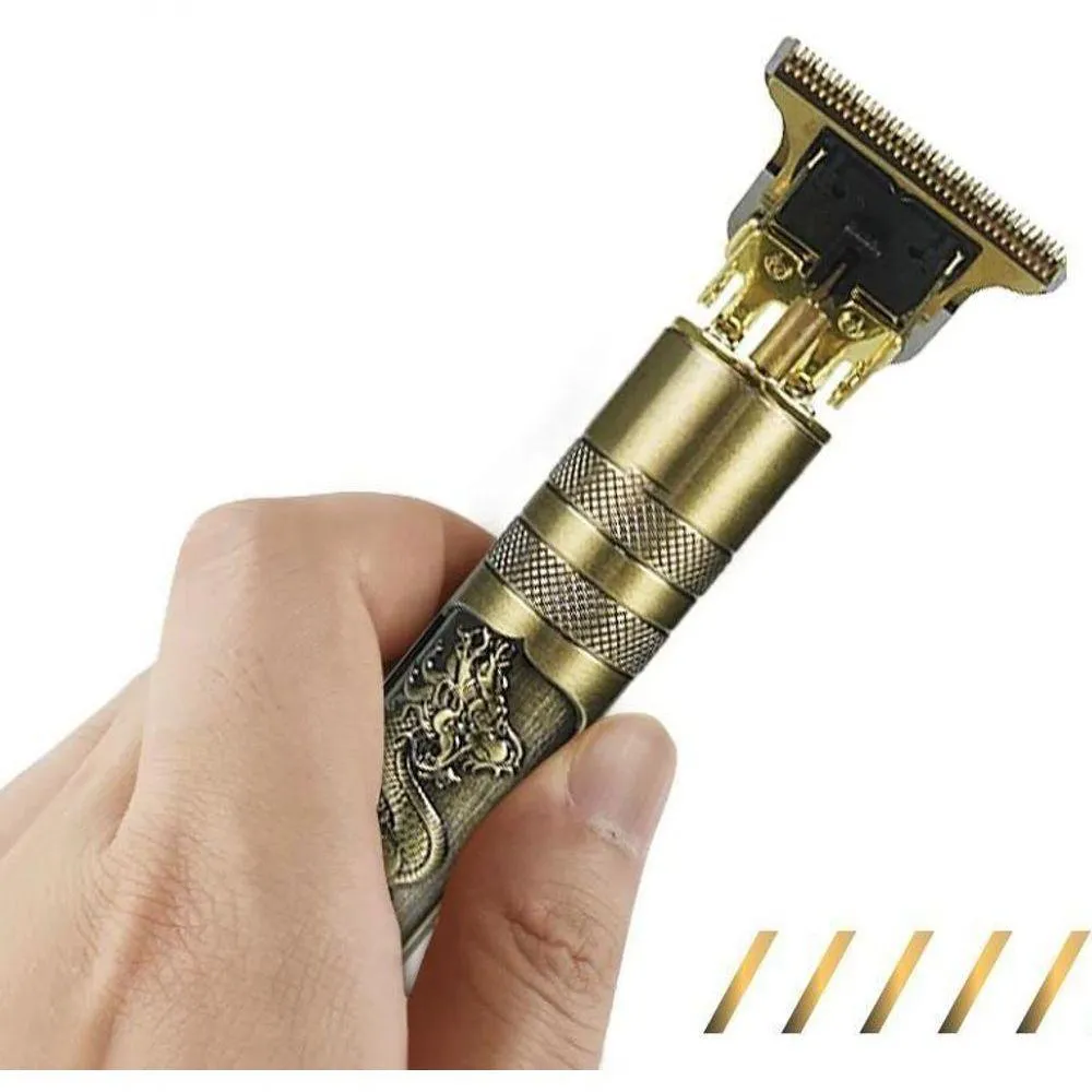 Conheça a máquina de corte detalhe barba dragão dourada o mais novo lançamento que está revolucionando a maneira que enxergamos corte de cabelo. É um incrível aparador de cabelo e barba, sem fio e recarregável, com uma bateria de que pode durar até 120 minutos de uso contínuo. Aparador externo profissional equipado com 3 pentes (1 mm, 2 mm, 3 mm) para cumprir exigências diferentes do comprimento. Você pode facilmente ajustar o pente para a altura certa e cortar o penteado que você deseja com extrema facilidade, pois é anatômica e antiaderente, garantindo total controle na hora do corte.