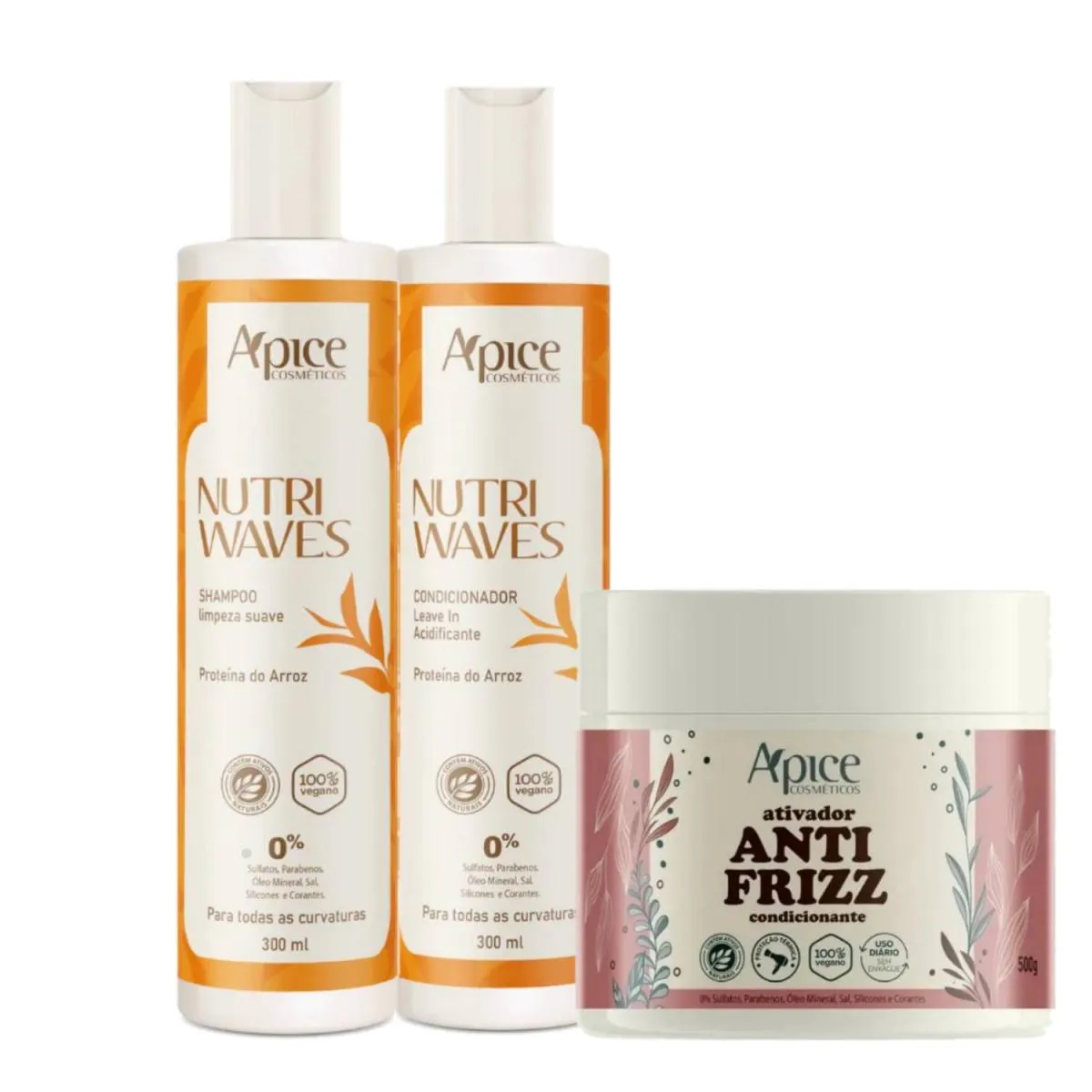 Apice Kit Shampoo Condicionador Nutri Waves + Ativador Anti Frizz