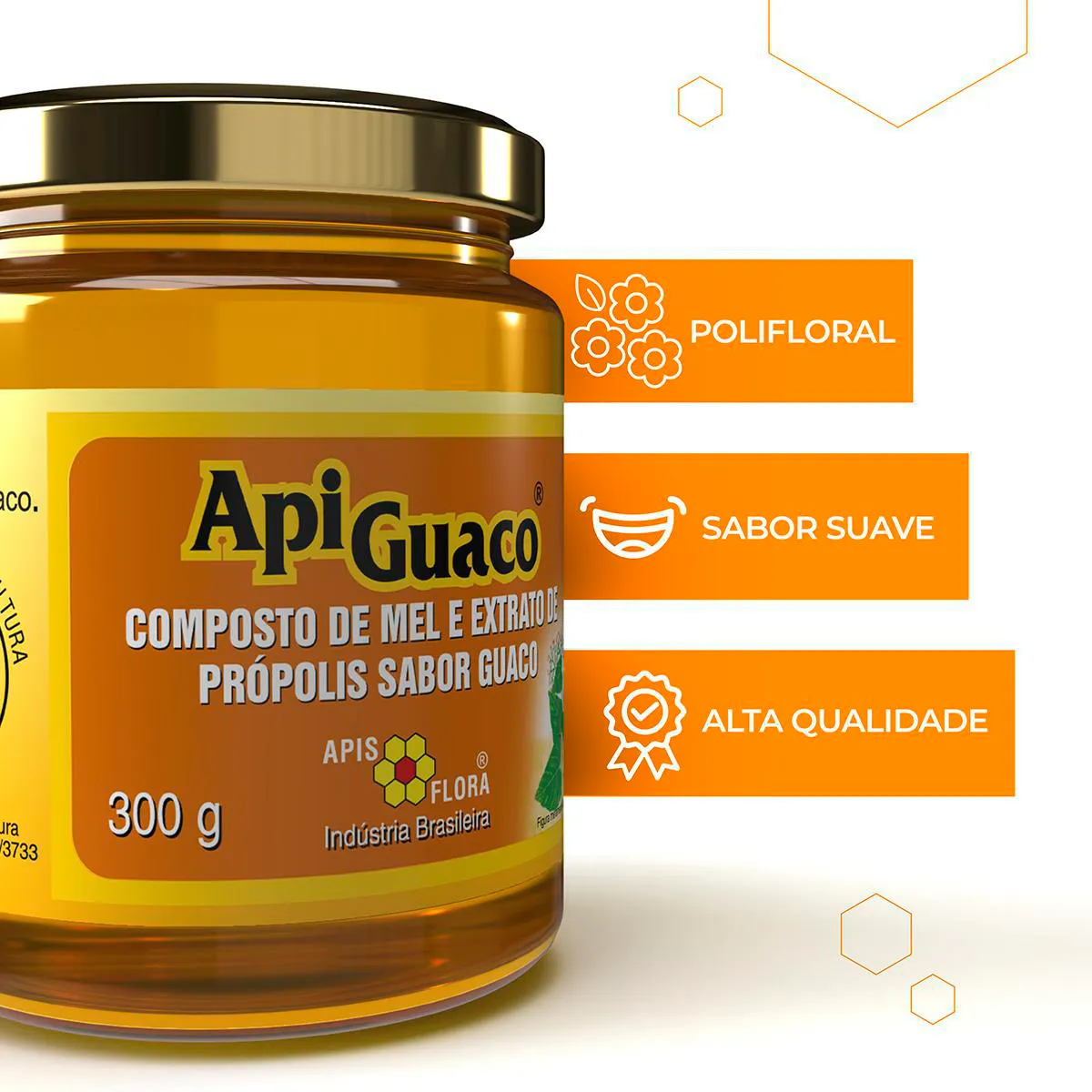 O Apiguaco é um composto de Mel, Extrato de Própolis e Guaco desenvolvido pela Apis Flora. Seu consumo é uma ótima fonte natural de nutrientes para o dia a dia.