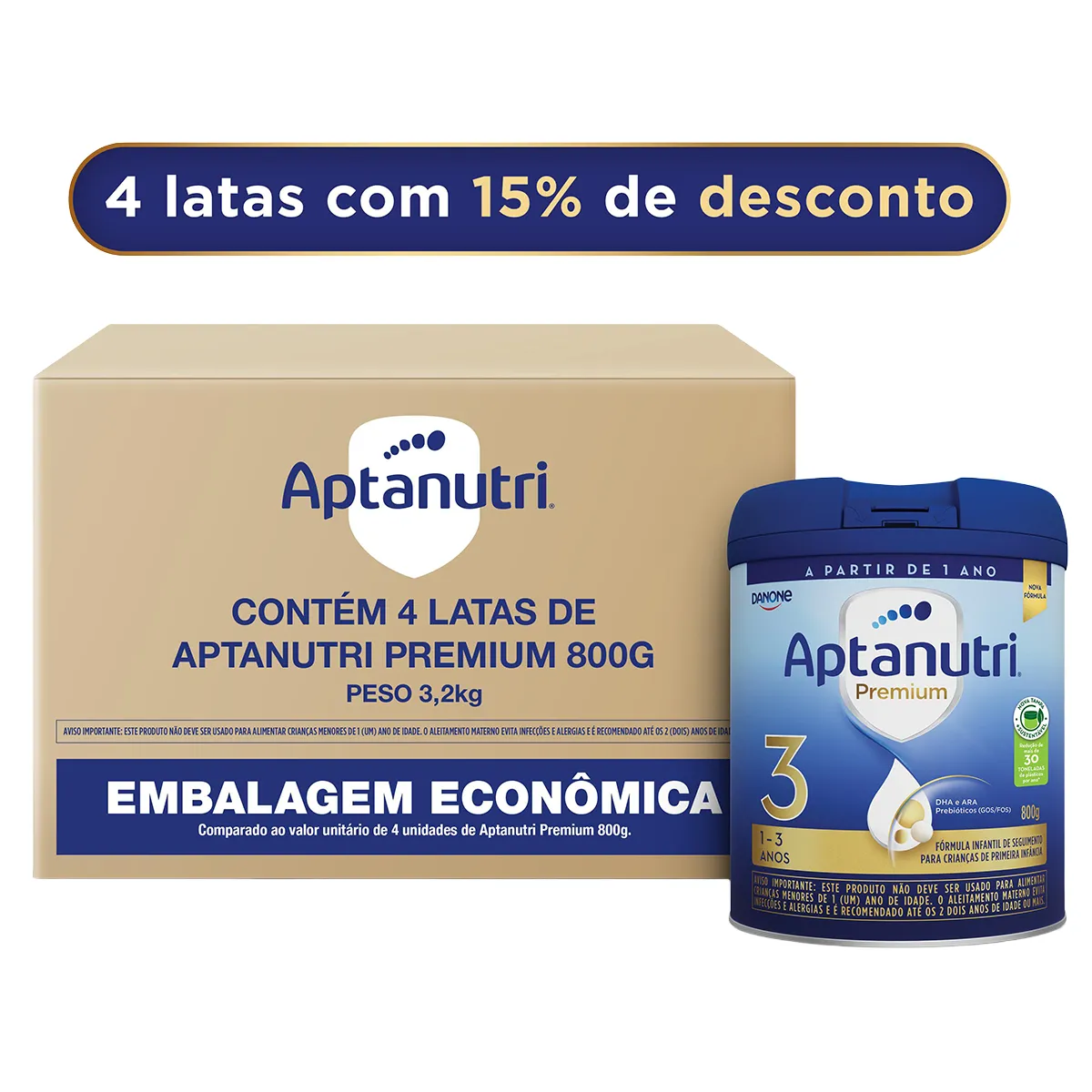 Fórmula Infantil Aptanutri Premium 3 Danone 1 a 3 Anos 4 unidades de 800g cada