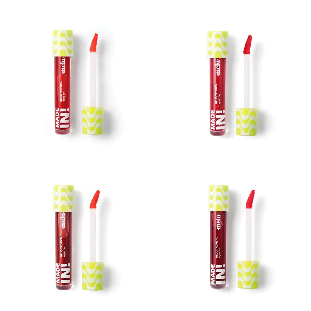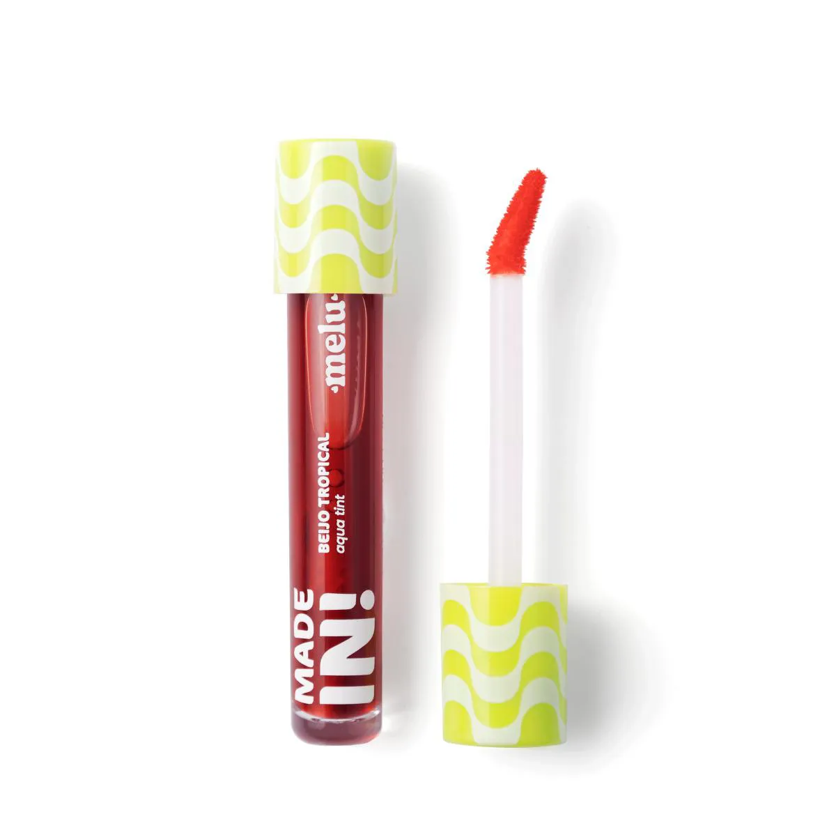 Sinta o sabor do verão nos seus lábios com o Aqua Tint Beijo Tropical da linha Made In!, da Melu by Ruby Rose. Inspirado na brasilidade vibrante, esse tint labial é perfeito para quem ama lábios com cor natural, leveza e hidratação. Disponível em quatro versões irresistíveis:- Laranja com Acerola