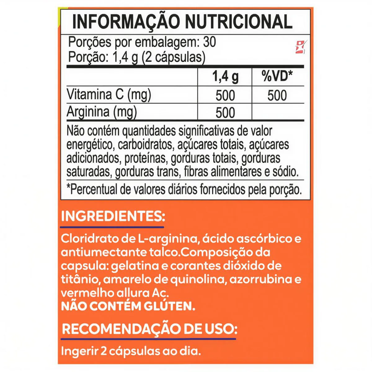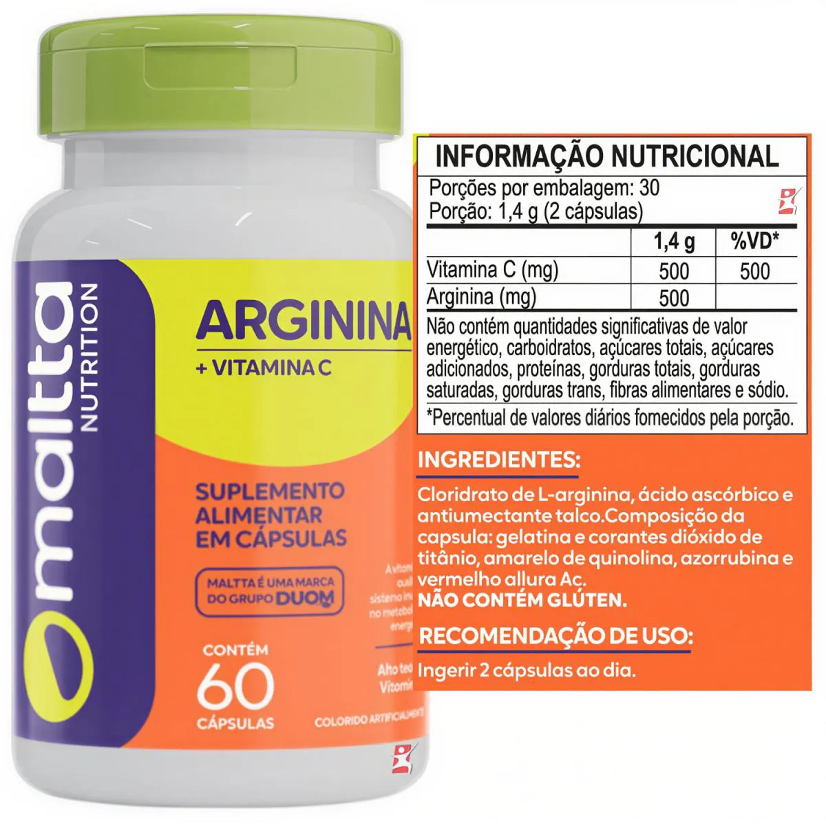 Arginina + Vitamina C Concentrada Antioxidante + Imunidade 60 Cápsulas - Maltta Nutrition