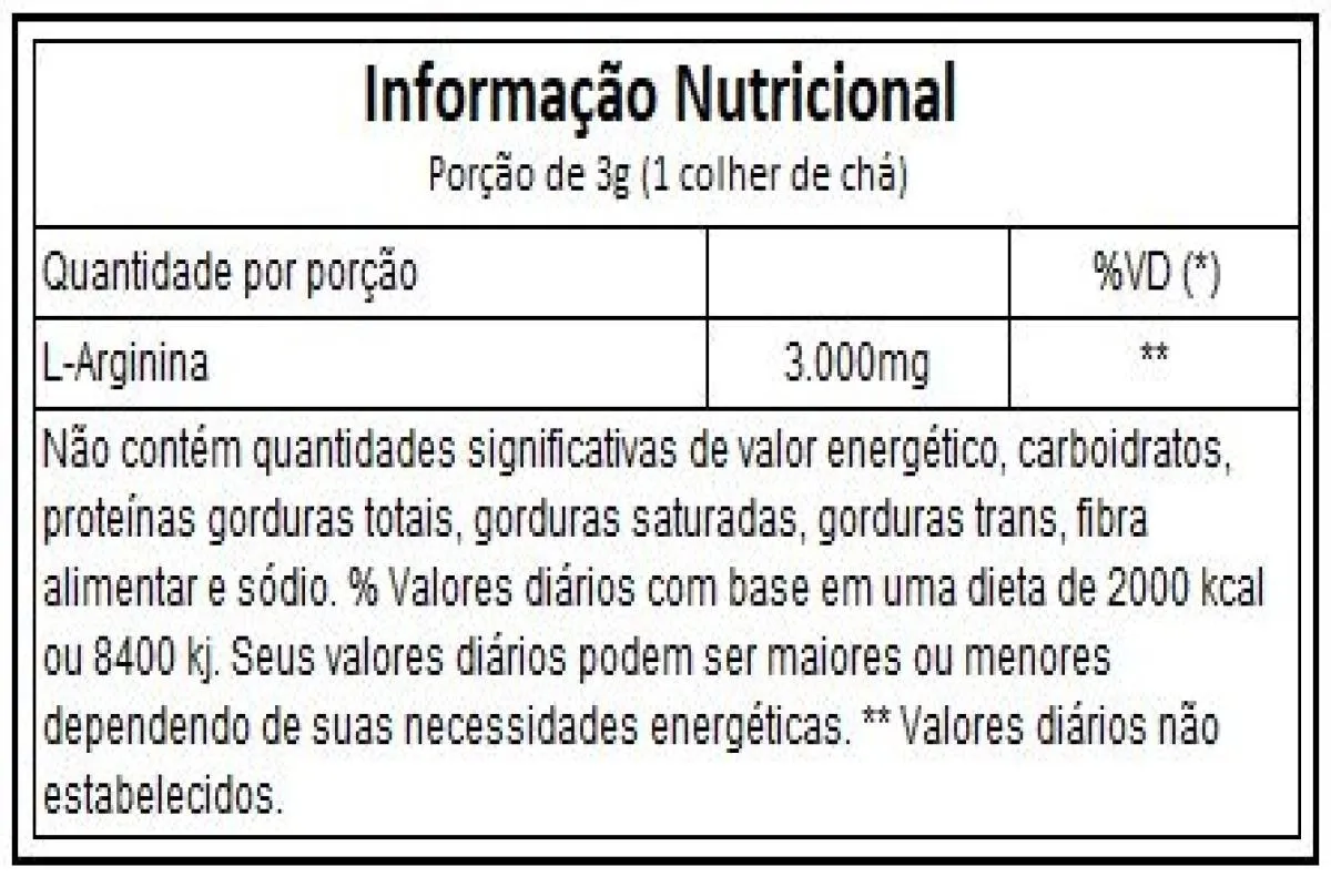 A Arginina é um aminoácido naturalmente presente no organismo, utilizado como suplemento para melhorar o desempenho físico e reduzir a fadiga muscular. Seu consumo estimula a produção de hormônio do crescimento (GH), promove vasodilatação, aumenta a chegada de nutrientes nos músculos e auxilia no crescimento muscular, na melhora da imunidade e na hipertrofia.