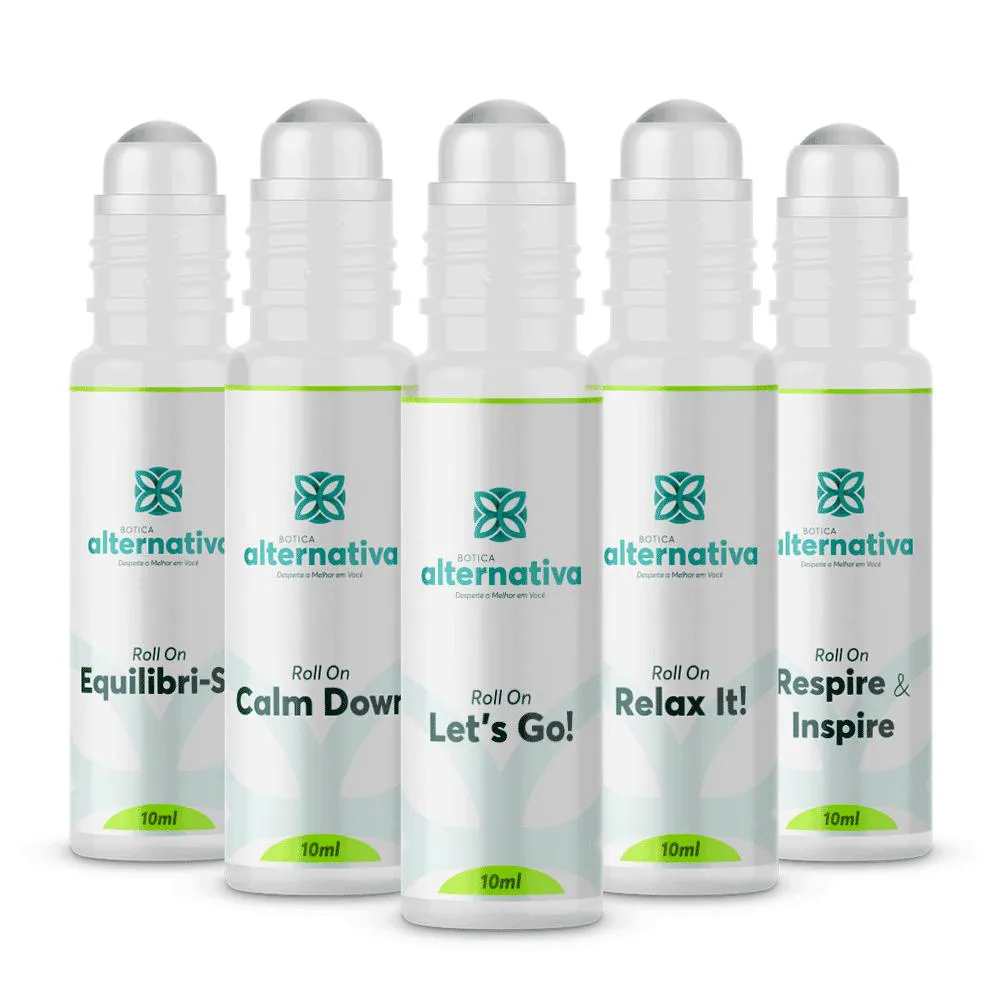 Composto por cinco Roll On exclusivos, o Kit 5+ SOS é seu aliado diário impecável. CALM DOWN traz serenidade instantânea, sendo perfeito para momentos de ansiedade. LET'S GO é ideal para quando você precisa de um impulso de confiança e motivação ao enfrentar novos desafios. Use EQUILIBRE-SE para localizar o equilíbrio emocional e reduzir os efeitos do estresse contínuo. RESPIRE E INSPIRE é formulado para aliviar as tensões e abrir as vias respiratórias de forma natural e instantânea. Para uma relaxação total, RELAX IT proporciona a serenidade necessária para um sono reparador.