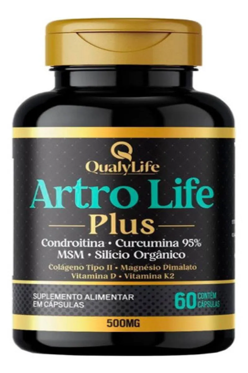 Artro Life Plus da Qualylife é um suplemento alimentar formulado para auxiliar na manutenção da saúde articular. Sua composição combina ingredientes reconhecidos por suas propriedades benéficas às articulações, proporcionando suporte para a mobilidade e bem-estar. Composição: Magnésio dimalato, Extrato de rizomas de cúrcuma longa, Sulfato de condroitina, Metilsulfonilmetano (MSM), Ácido ortosilícico estabilizado em maltodextrina, colágeno tipo II, Menaquinona-7 (vitamina K2), Colecalciferol (vitamina D3); Composição da cápsula: gelatina, umectante glicerina e corante dióxido de titânio NÃO CONTÉM GLÚTEN Recomendação de Uso: Ingerir duas cápsulas ao dia, preferencialmente junto às refeições, ou conforme orientação de um profissional de saúde. Advertências:- Este produto não é um medicamento.