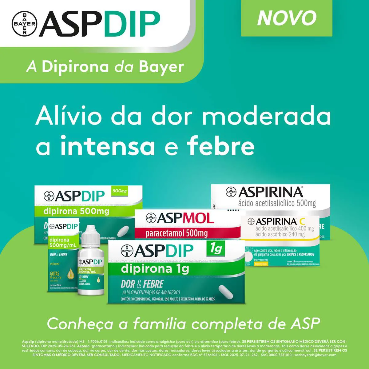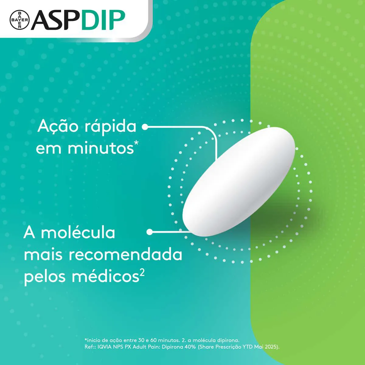 O Aspdip é um medicamento à base de dipirona, indicado para o tratamento de dores intensas e febre. Com ação rápida, é amplamente utilizado por adultos e adolescentes acima de 15 anos, proporcionando alívio eficaz em cerca de 30 a 60 minutos após a administração.