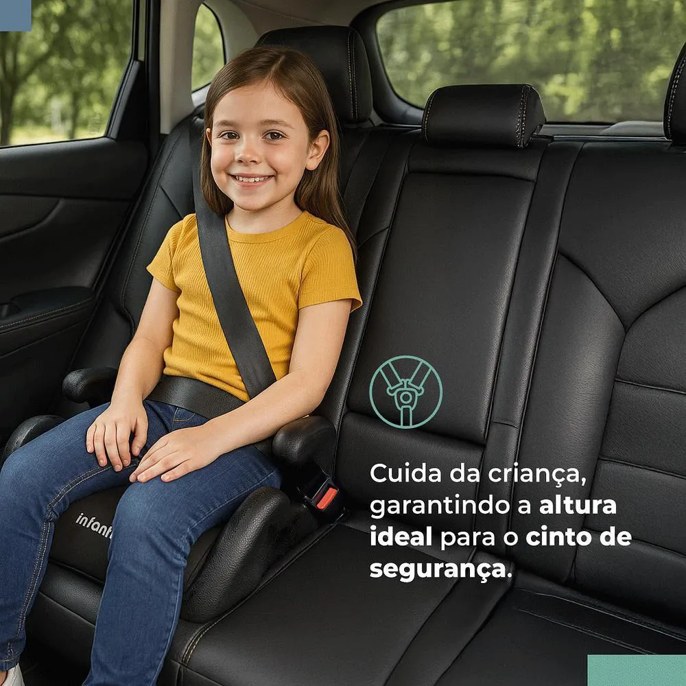 • Indicado para crianças maiores: Proporciona a elevação correta para segurança com o cinto de segurança veicular.