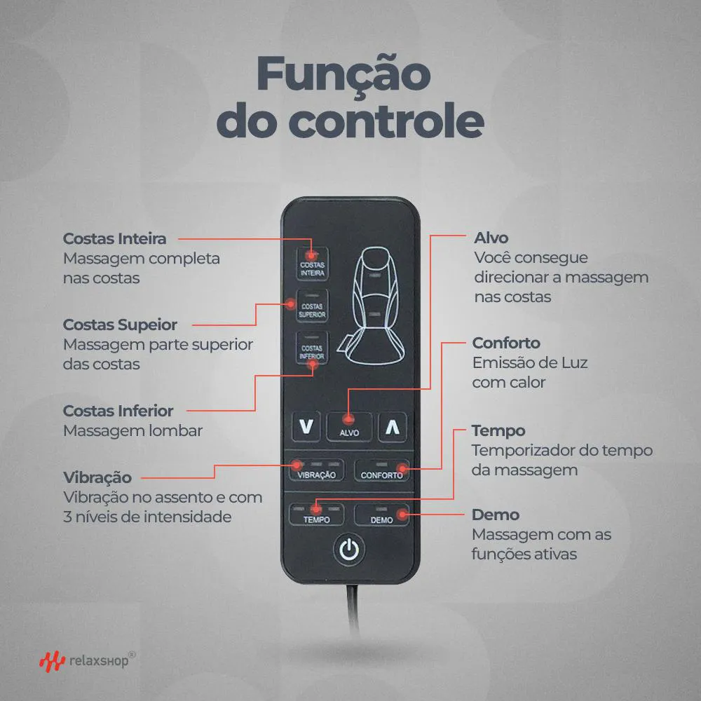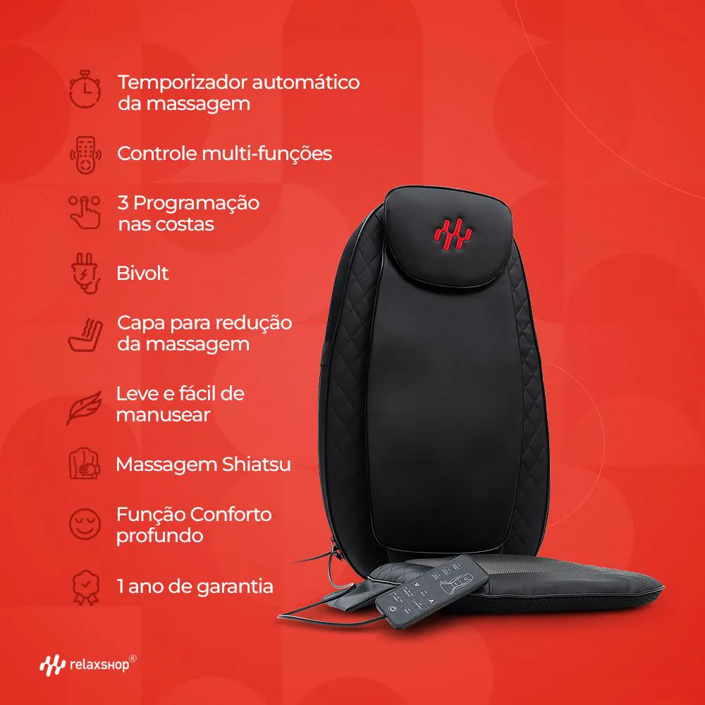- Tipo de Produto: Assento de Massagem Shiatsu Relaxshop para Costa e Lombar