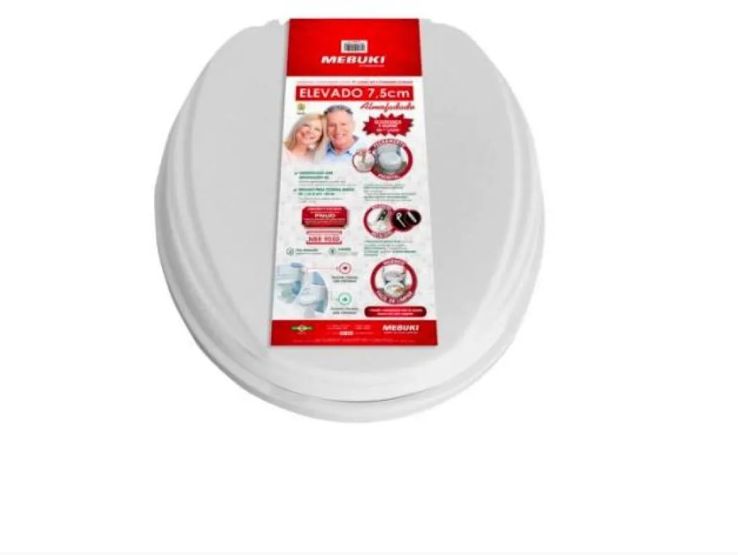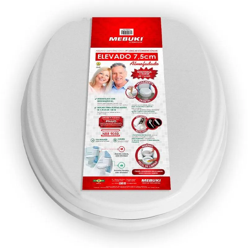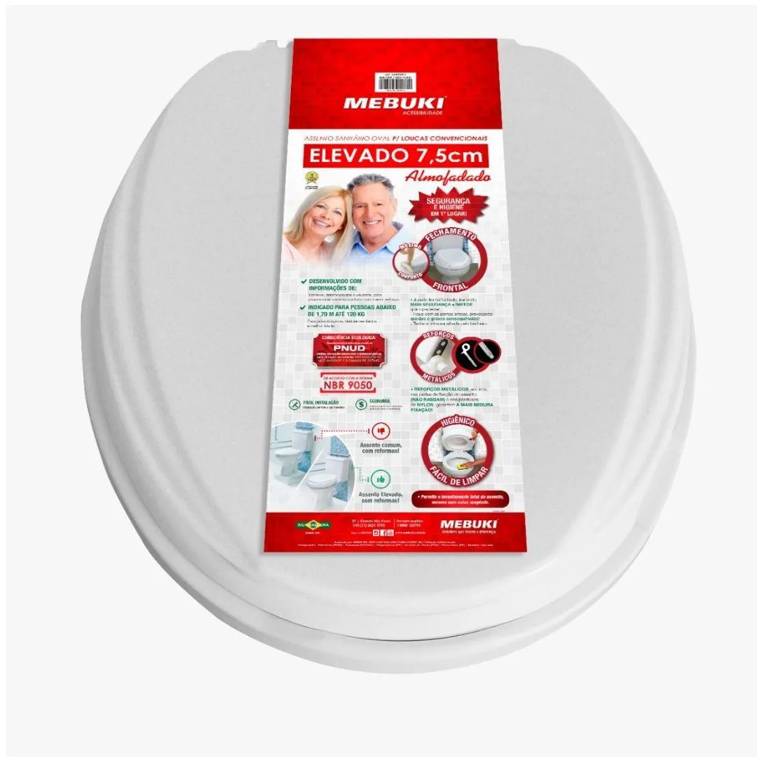 Assento Sanitário Oval Elevado com Tampa 7, 5 Cm Almofadado - Mebuki
