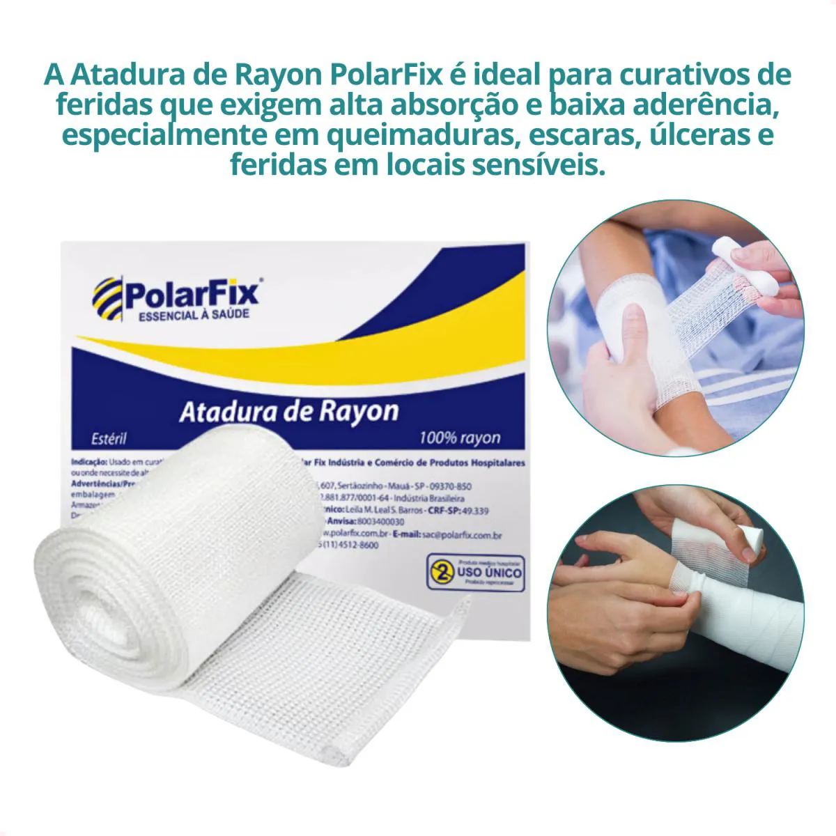 A Atadura de Rayon PolarFix é ideal para curativos de feridas que exigem alta absorção e baixa aderência, especialmente em queimaduras, escaras, úlceras e feridas em locais sensíveis. Com fibras sintéticas 100% rayon, a atadura é macia, não estéril, e proporciona proteção sem grudar na pele, facilitando o processo de troca de curativos e reduzindo o risco de traumas ao tecido.