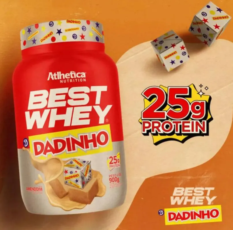 INGREDIENTES: FORMULA BEST WHEY BLEND [Proteína Concentrada do Soro do Leite (WPC), Proteína Isolada do Soro do Leite (WPI), Proteína Hidrolisada do Soro do Leite (WPH)], Soro do Leite Desmineralizado. FORMULA DADINHO (Amendoim Torrado e Moído, Polidextrose, Cacau em Pó, Cloreto de Sódio e Edulcorantes Sorbitol e Sucralose), Farinha de Amendoim, Cacau em Pó, Aromatizantes, Espessante Goma Xantana, Corante Natural Caramelo, Edulcorantes Sucralose, Acesulfame de Potássio e Glicosídeos de Esteviol (Stevia). “NÃO CONTÉM GLÚTEN.” ALÉRGICOS: CONTÉM AMENDOIM E DERIVADOS DO LEITE, AMENDOIM E SOJA*. PODE CONTER OVO, AMÊNDOA, GERGELIM, CASTANHA DE CAJU, CASTANHA DO BRASIL E AVEIA SEM GLÚTEN. CONTÉM LACTOSE. *Ingrediente usado no processo de instantaneização da proteína do soro do leite. Nossa equipe especializada em Inovação, Pesquisa e Desenvolvimento foi até o fundo do baú para resgatar o sabor da infância e produzir o novíssimo Best Whey® sabor Dadinho, o verdadeiro gosto de nostalgia! A novidade conta com 25g de proteína por porção, adoçado com Stevia, zero açúcar, zero glúten, zero gordura trans, baixo teor de carboidratos e ideal para você conseguir os resultados desejados na academia. Antes ou depois do treino, Best Whey® Dadinho possui a exclusiva fórmula com blend de proteínas WPC, WPI e WPH, importantes para auxiliar na recuperação muscular, ganho de massa, rendimento nas atividades físicas e ainda colaboram na reeducação alimentar, uma vez que ajuda na saciedade. Best Whey® Dadinho ficou cremoso, altamente delicioso, ideal para você tomar um shake antes de ir à academia ou então criar receitas maravilhosas na cozinha. Fica bom de qualquer jeito RECOMENDAÇÃO DE USO: 40 g, uma vez ao dia, para indivíduos saudáveis a partir de 19 anos. MODO DE PREPARO: BLENDER: Adicione em sua Blender 40 g (2 dosadores cheios) de BEST WHEY® + 200 ml de água e agite.