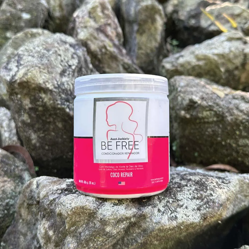 O Coco Repair Be Free by Aunt Jackie’s tem uma fórmula rica em óleos preciosos, como coco, linhaça, oliva e abacate, que levam nutrientes para os fios, ajudando a melhorar a aparência e fortalecer cabelos danificados.
