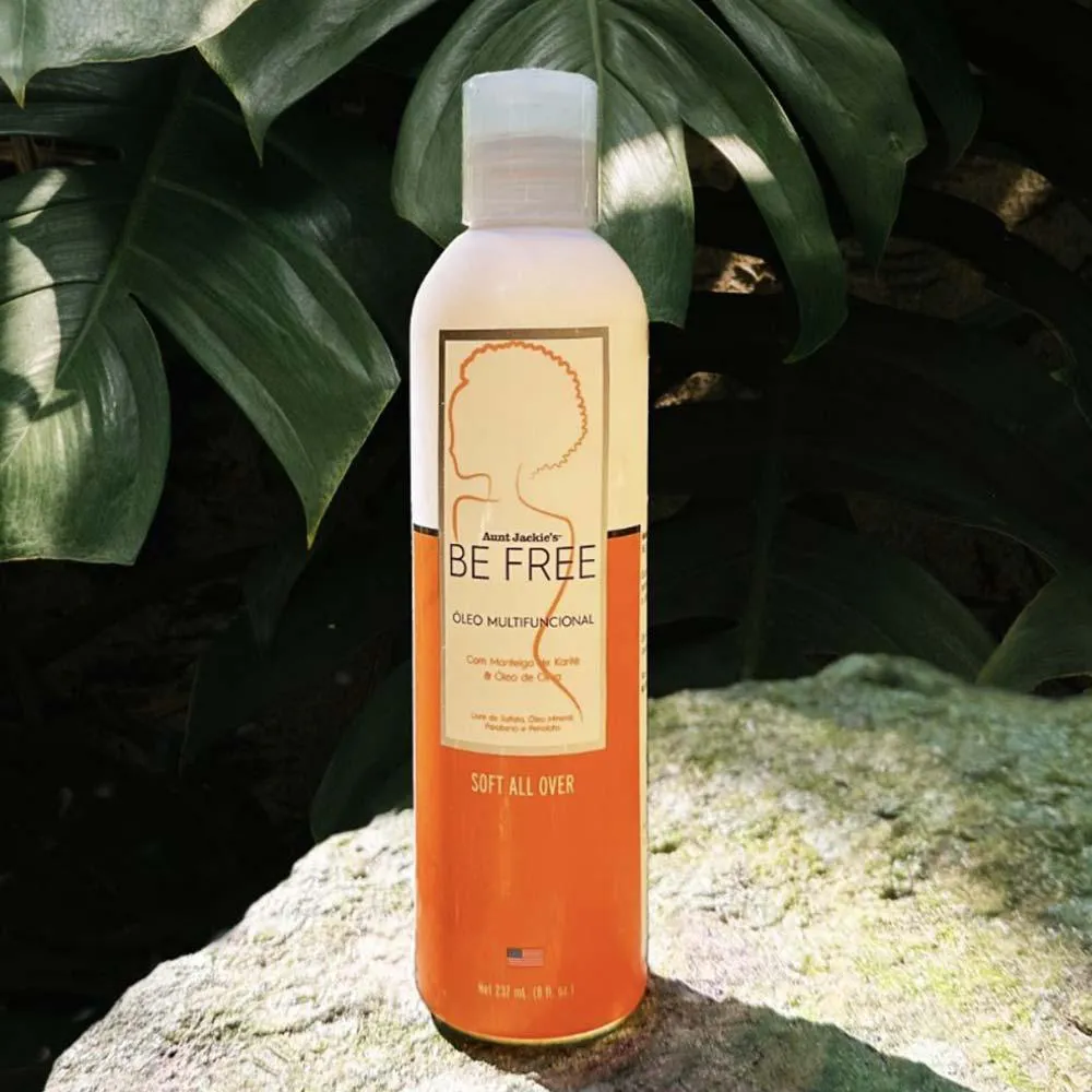 O Soft All Over Be Free by Aunt Jackie’s é um óleo multifuncional que age da cabeça aos pés, deixando os cabelos lindos e iluminados, as unhas fortes e a pele hidratada.