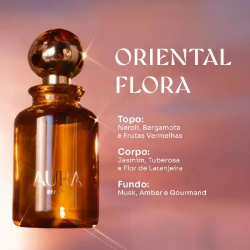 Inspirado nas raízes oníricas e mitológicas da marca, este Deo Colônia traduz a essência de AURA: uma beleza sensorial, intuitiva, mística e corajosa, feita para mulheres que vivem com brilho nos olhos e alma à flor da pele. Com notas frescas de neroli, bergamota e frutas vermelhas, esta fragrância desperta sonhos, intuições e desejos. No coração, o sopro de flores brancas como jasmim, tuberosa e flor de laranjeira carrega a força das deusas modernas - livres, sensuais e conscientes. E, no corpo, o encontro entre o divino e o terreno se revela em uma base envolvente de musk, âmbar e notas gourmand, criando um elo entre o corpo floral e a alma amadeirada e adocicada.