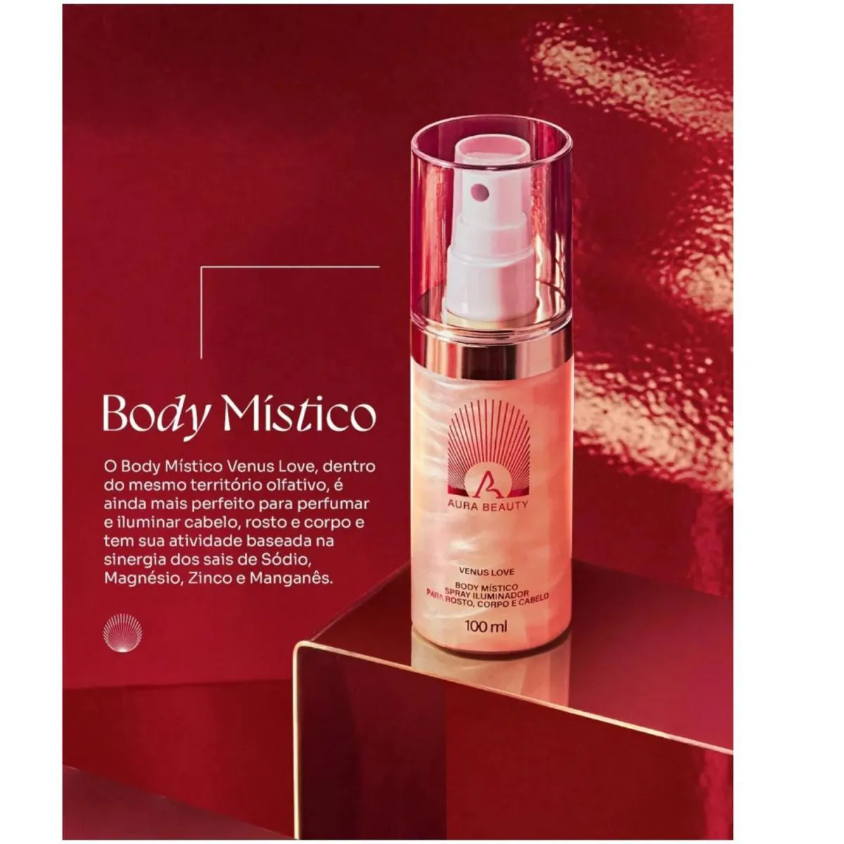 O Aura Místico Vênus Love Body Spray 100ml é ideal para quem busca uma fragrância envolvente, feminina e cheia de charme, perfeita para acompanhar a rotina diária. Sua perfumação leve e equilibrada envolve a pele com um aroma agradável, proporcionando sensação de frescor, bem-estar e cuidado ao longo do dia. Com fórmula confortável e versátil, pode ser usado após o banho ou sempre que desejar renovar a fragrância, sem pesar. O frasco de 100ml é prático para levar na bolsa, garantindo perfumação a qualquer momento. Uma excelente escolha para quem ama fragrâncias suaves, mas marcantes, que despertam sensações e elevam a autoestima. Destaques do produto: