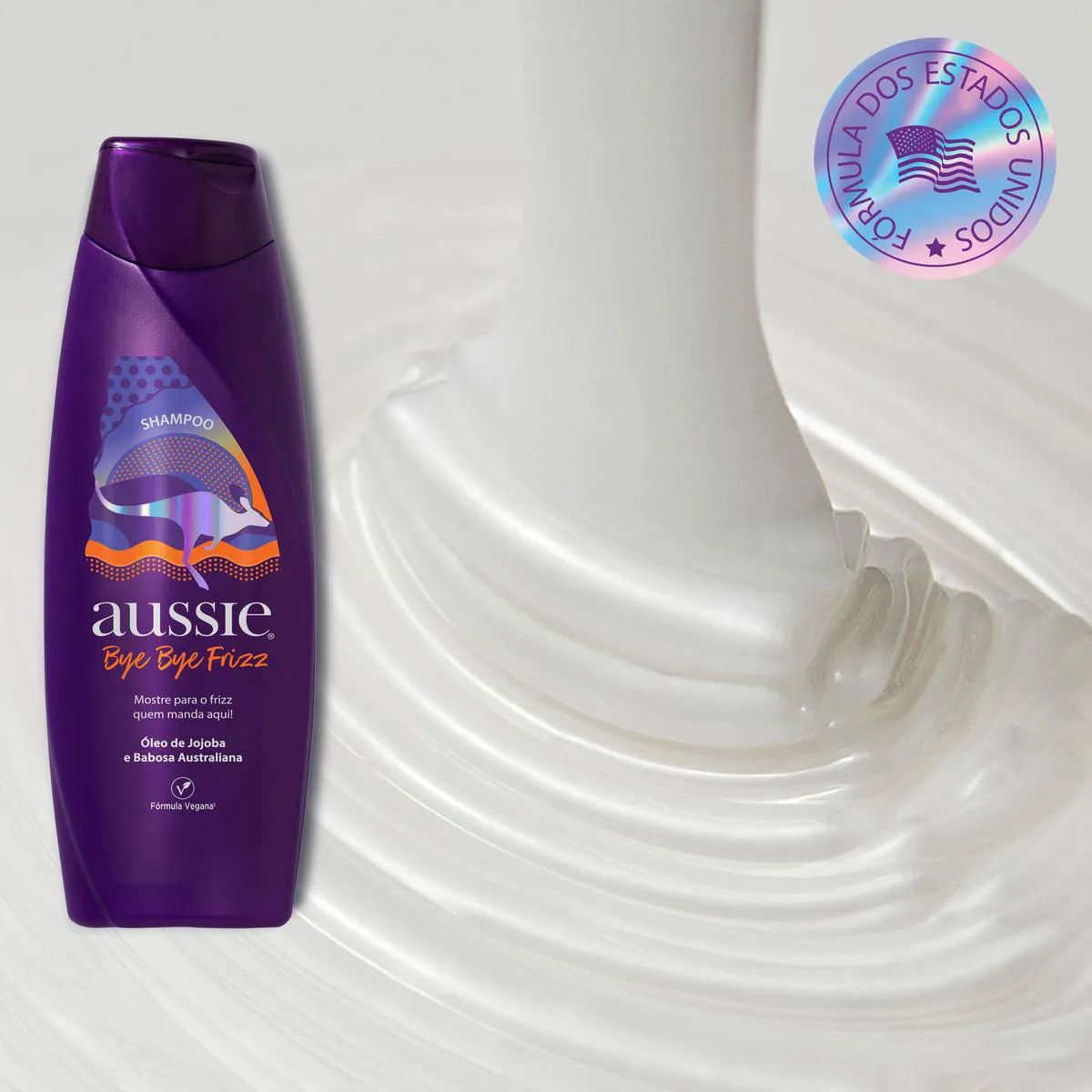 O shampoo Aussie Bye Bye Frizz Maciez e Brilho possui fórmula dos Estados Unidos e inspirada na Austrália, feita com Babosa Australiana e Óleo de Jojoba. 100% livre de parabenos, petrolatos e corantes, este é um produto Vegano e Cruelty Free.