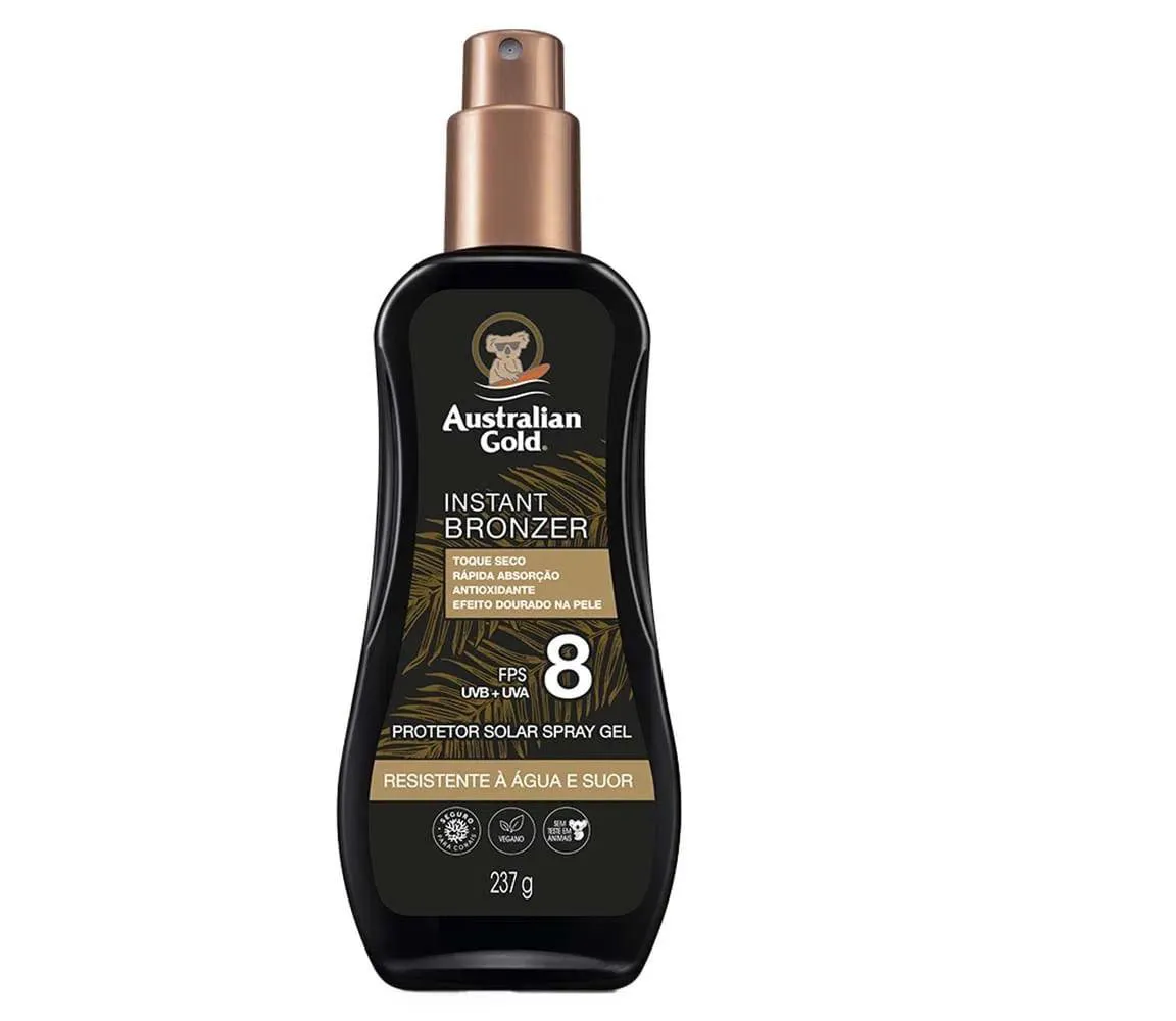 1 protetor solar Corporal Spray Gel Australian Gold Instant Bronzer FPS8 - 237g