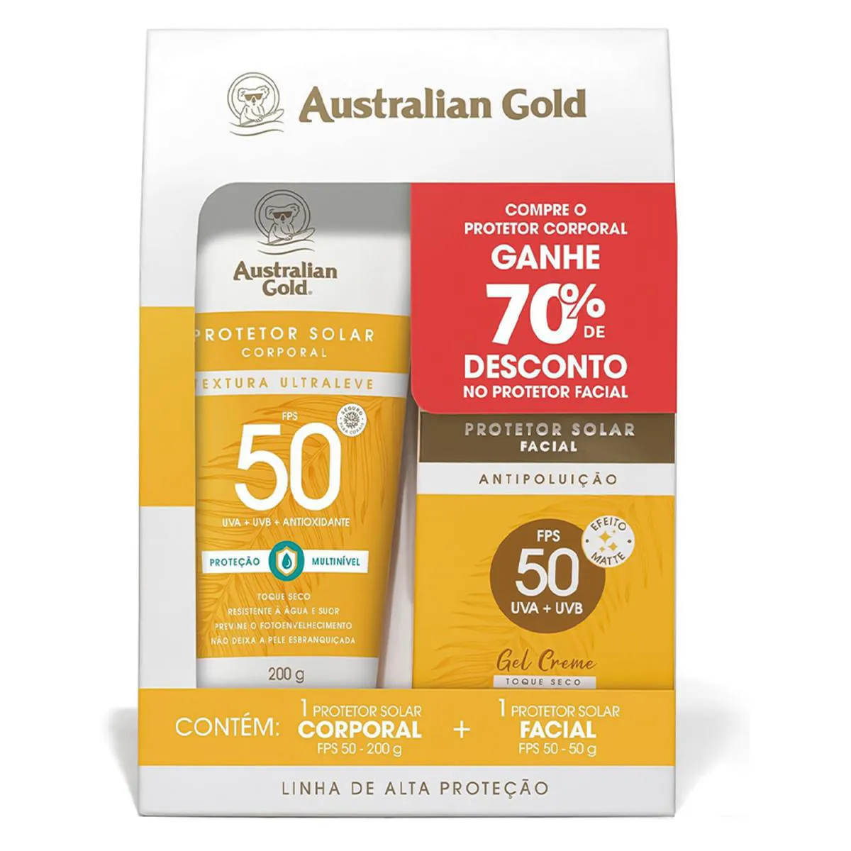 Australian Gold Kit Protetor Solar Corporal Proteção Multinível Fps 50 + Protetor Solar Facial Fps 50
