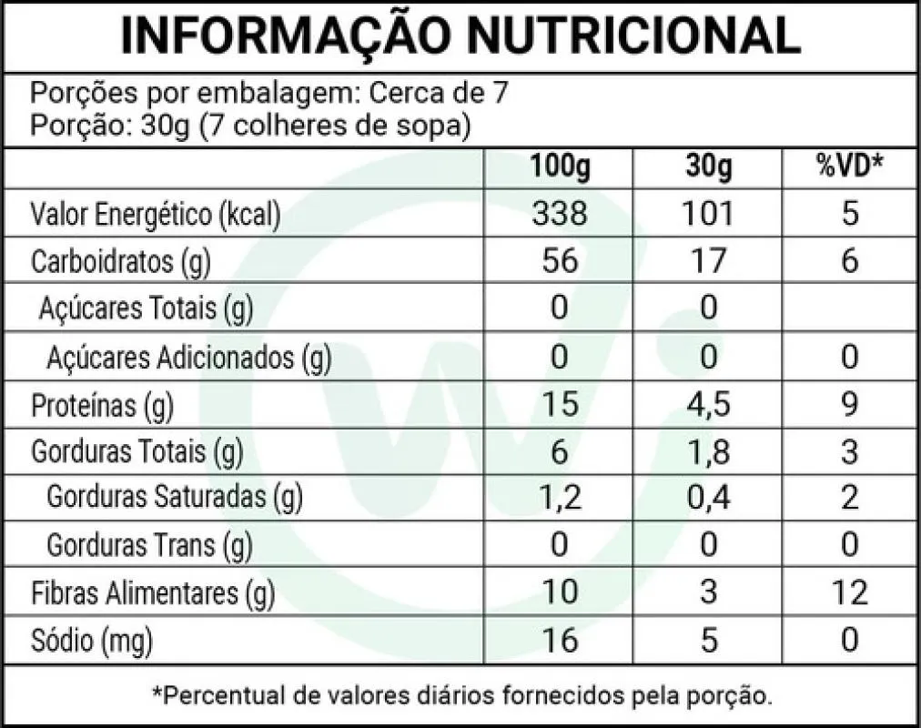 Ingrediente: aveia sem glúten.