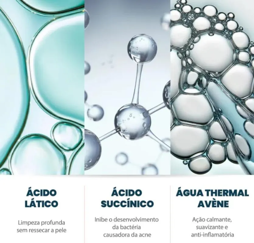 O Gel de Limpeza Profunda Avène Cleanance Intense possui uma combinação exclusiva de ativos inovadores, Ácido Lático e Ácido Succínico, que ajudam a combater a acne, evitam o efeito rebote e garantem ação antioleosidade prolongada.