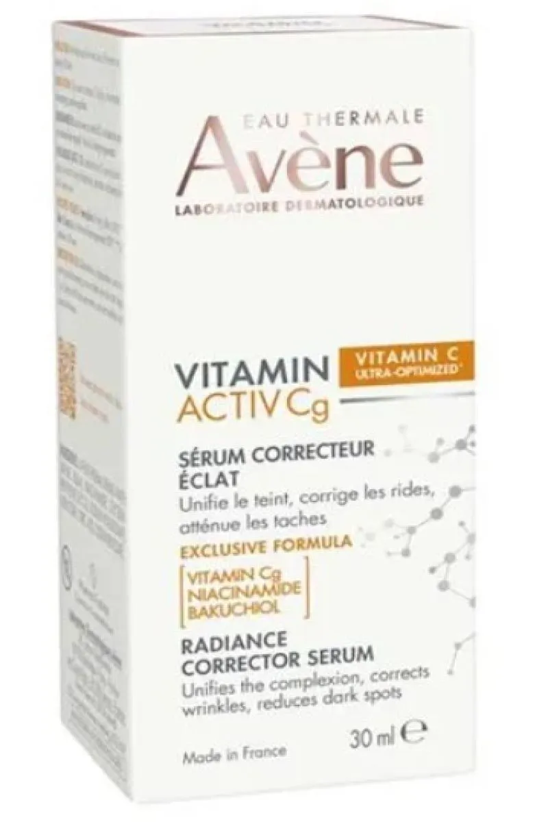 O Avène Vitamin Activ Cg é um sérum facial formulado com um trio de ingredientes ativos (vitamina Cg, Bakuchiol e Niacinamida), desenvolvido para combater sinais de envelhecimento cutâneo. Sua composição contém 1,8% de vitamina Cg, com eficácia antioxidante equivalente a 20% de vitamina c.