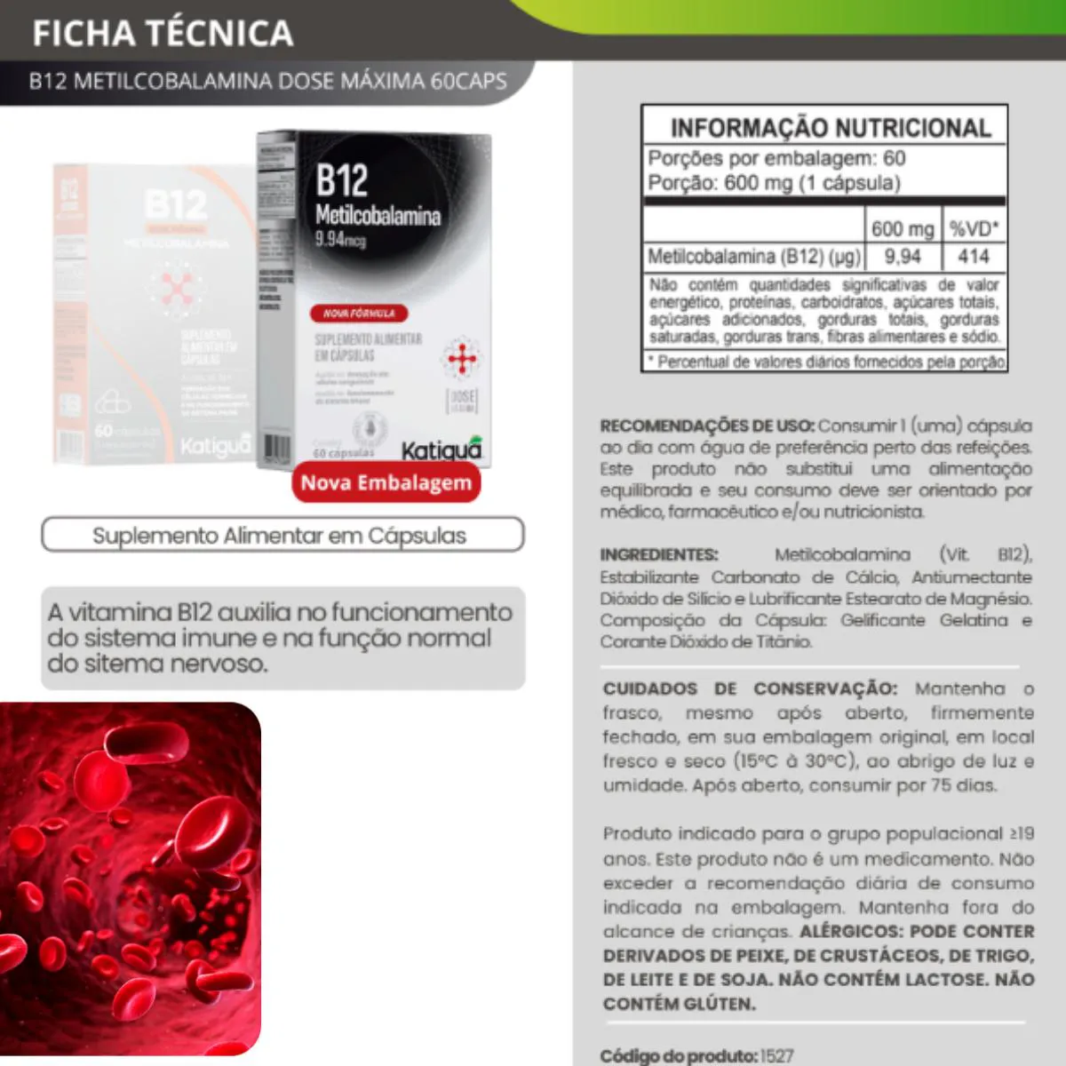 O que é e para que serve o B12 9,94Mcg Ultra Metilcobalamina 60Caps Katigua?
