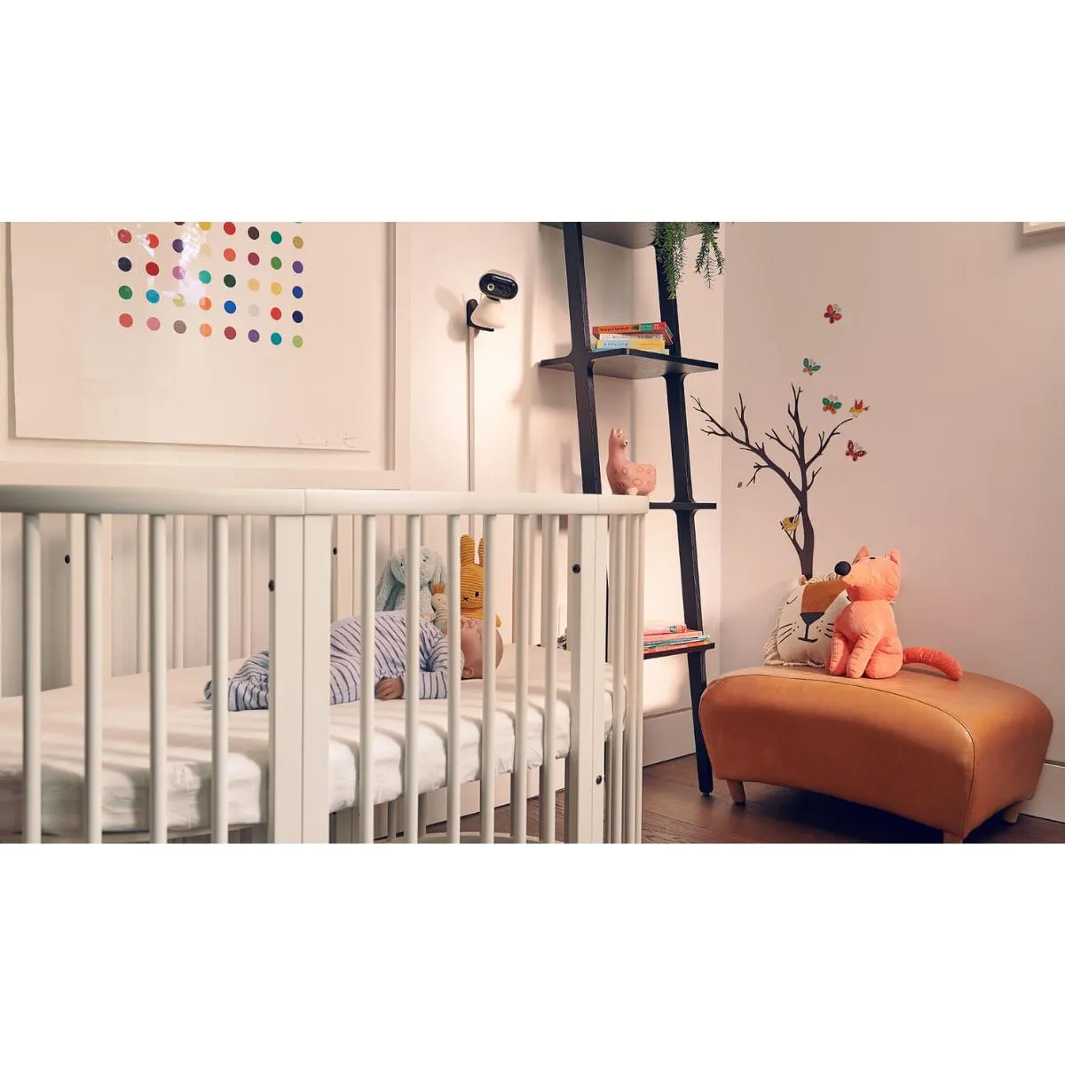 - Posicione a câmera do bebê em um local estratégico do quarto, utilizando o suporte de parede incluso, garantindo uma visão clara do berço.