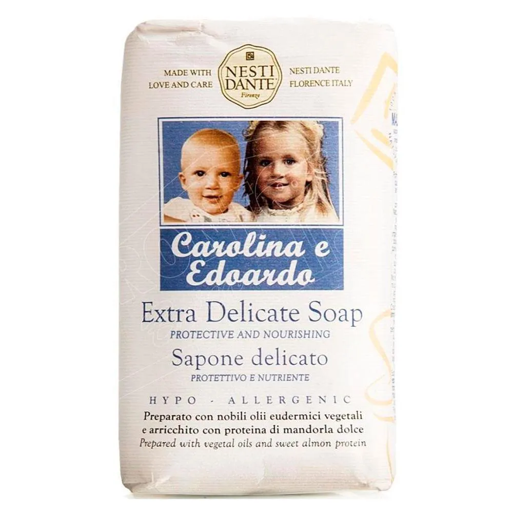 Baby Carolina e Edoardo de Nesti Dante é um sabonete infantil preparado com óleos vegetais e enriquecido com mel, extrato de calêndula e proteína de amêndoa. É ideal para a pele de bebês, graças a sua fórmula delicada e sensível.