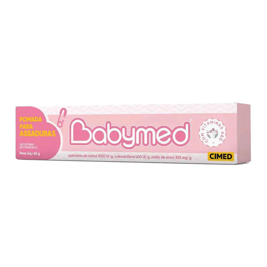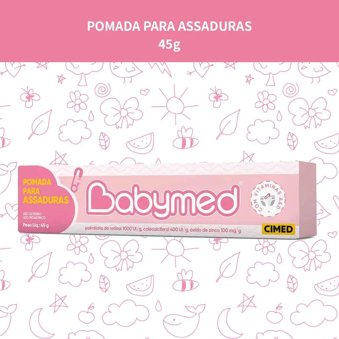 Babymed Rosa Pomada Assaduras 100mg Kit 2 - 45g - Cimed A Babymed Rosa da Cimed é uma pomada desenvolvida para o cuidado diário da pele delicada dos bebês, especialmente nas áreas em contato com fraldas. Sua fórmula contém palmitato de retinol (vitamina A), colecalciferol (vitamina d) e óxido de zinco (100 mg/g ou 150 mg/g conforme a formulação), componentes que ajudam na manutenção da pele protegida e confortável. Com textura cremosa, fácil de aplicar e espalhar, forma uma camada protetora sobre a pele, reduzindo o contato direto com agentes irritantes presentes na urina e nas fezes. Ideal para uso diário após a limpeza da pele na troca de fraldas. Características técnicas: - Contém palmitato de retinol (Vitamina A) + colecalciferol (Vitamina D) + óxido de zinco. - Apresentação: bisnaga com 45 g. - Textura cremosa, fácil de aplicar, adequada para uso infantil. - Desenvolvida para formar barreira protetora na pele em contato com fraldas ou umidade. - Uso externo Modo de uso: Limpe e seque bem a pele da área da fralda. Aplique uma camada fina da pomada Babymed Rosa nas áreas indicadas, uniformemente, a cada troca de fralda ou sempre que necessário. SOBRE A LOJA: Somos a rede de farmácias mais antiga de São José dos Pinhais, atuando no ramo farmacêutico desde 1990 com comprometimento à qualidade e satisfação do cliente. É um prazer compartilhar os nossos valores e as nossas conquistas com quem confia no nosso trabalho! Imagens dos Produtos são Meramente Ilustrativas. Todas as Informações Divulgadas são de Responsabilidade Exclusiva do Fabricante/fornecedor.