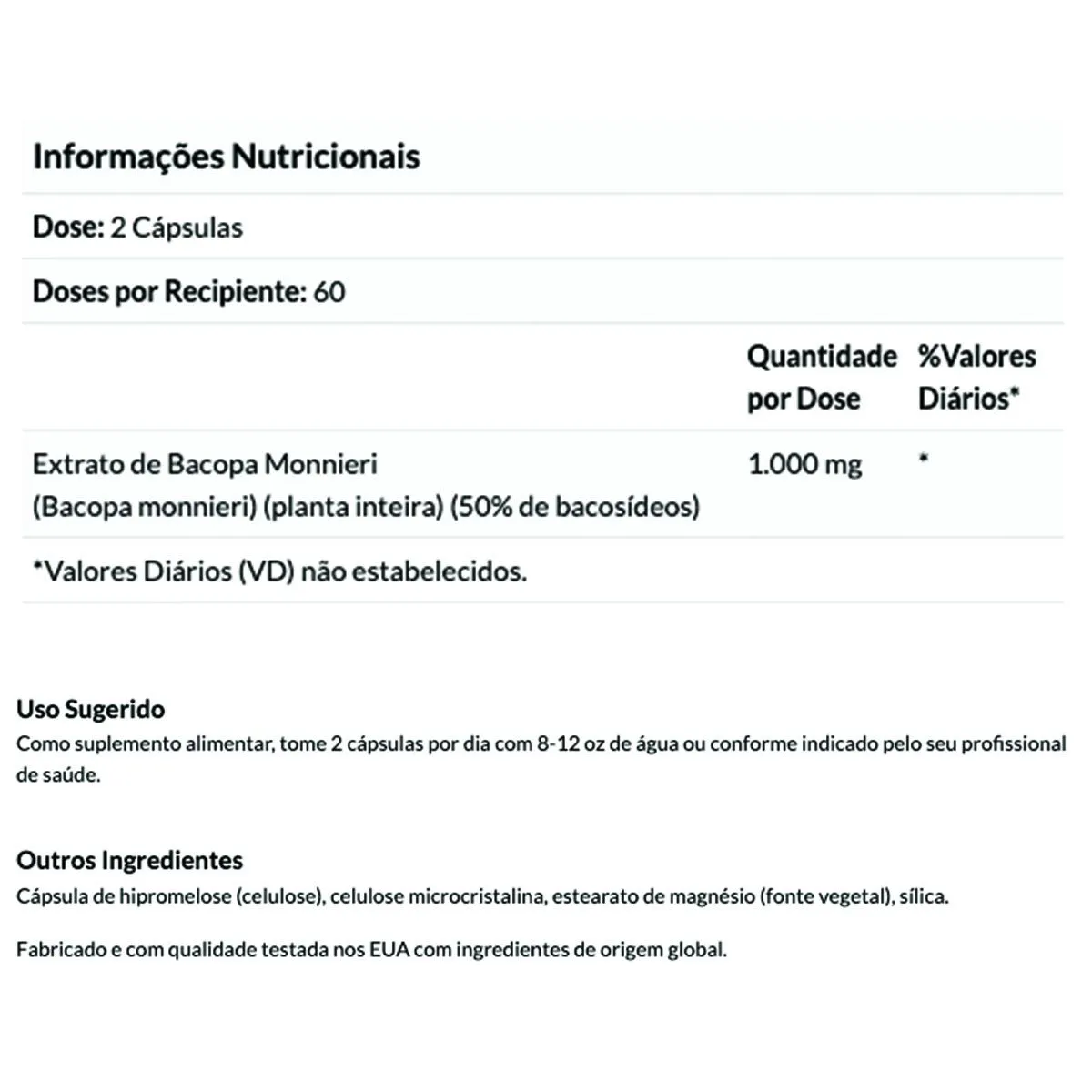 Bacopa Monnieri 500Mg 120 Cápsulas Nutricost = Brahmi Agora