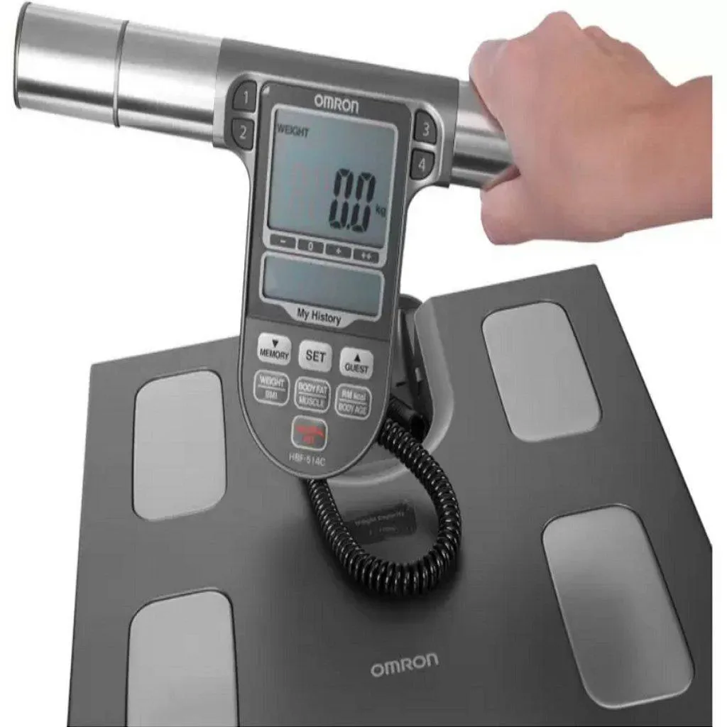 A Balança de Controle Corporal OMRON HBF514C calcula a porcentagem de gordura corporalatravés do método de Impedância Bioelétrica (IB) ou Bioimpedância.