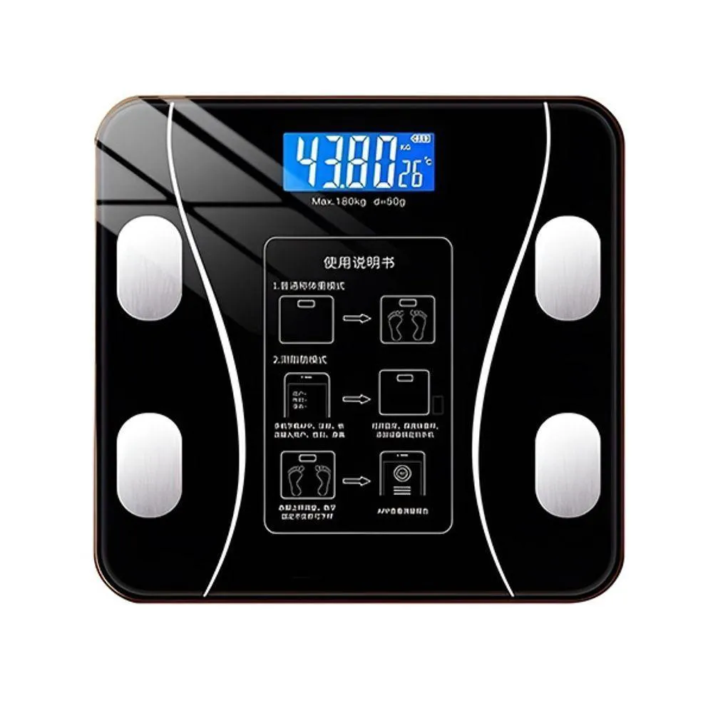 Balança Digital Inteligente Preta Com Função De Bioimpedância E Aplicativo Bluetooth Com 12 Funções