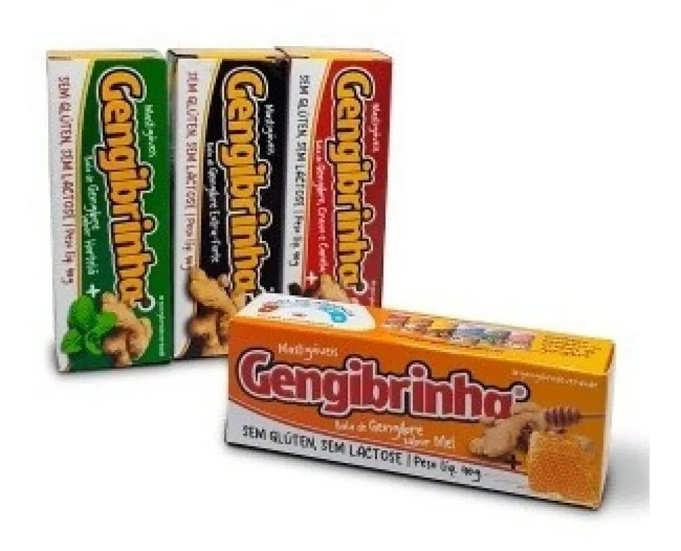 Para os que gostam muito do gengibre ou precisam de um efeito mais forte a “Extra Forte”, para os que não gostam tanto ou para nossos pequeninos que sempre querem um docinho a de “Mel”, além das deliciosas Cravo e canela, Hortelã e também a única bala de gengibre do mercado com colágeno a Gengibrinha de Morango.
