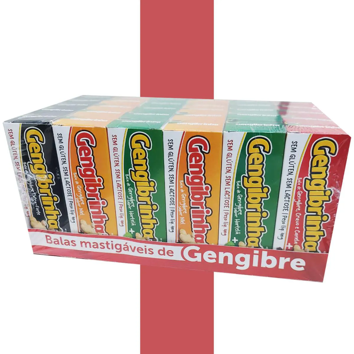 Descrição do anúncio: 1 caixa de bala mastigável com 30 unidades 40g. Gengibrinha é uma linha de produtos alimentares especializada em derivados de Gengibre.