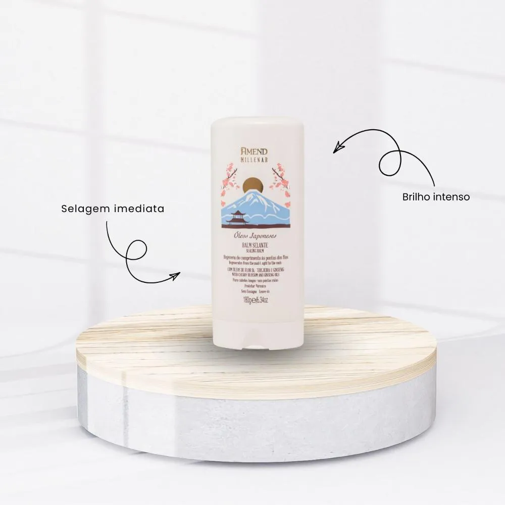 O Balm Selante Amend Millenar Óleos Japoneses é um produto finalizador capilar com textura de creme denso que se torna fluido leve ao ser aplicado. Ele foi desenvolvido para selar as cutículas, nutrir e alisar a fibra capilar, oferecendo proteção térmica e controle de frizz para todos os tipos de cabelo.