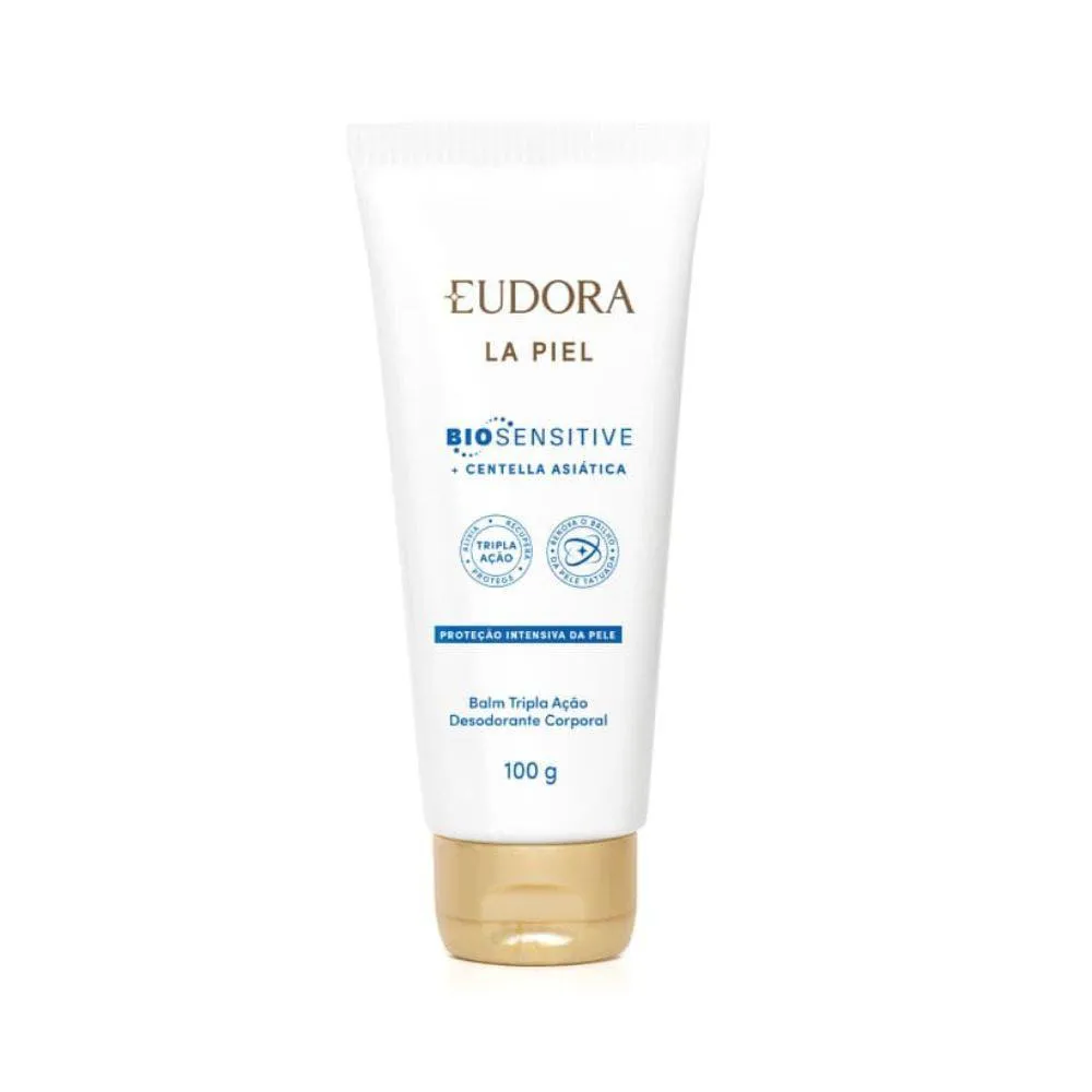 #html-body [data-pb-style=UCI55EC]{justify-content:flex-start;display:flex;flex-direction:column;background-position:left top;background-size:cover;background-repeat:no-repeat;background-attachment:scroll}Eudora La Piel entende que sua pele é o seu bem mais precioso e que você não precisa escolher entre tratamento e perfumação. Com Tecnologia Biosensitive , desenvolvida exclusivamente para a proteção contra os 7 sinais da pele sensível, o Balm Tripla Ação Desodorante Corporal La Piel Biosensitive possui alta concentração de ativos calmantes para cuidar de peles sensíveis. Desenvolvido para recuperação completa desde o primeiro uso, esse balm tripla ação garante alívio imediato dos desconfortos da pele¹ com: alívio, recuperação e proteção. Além disso, traz fórmula cremosa que hidrata profundamente, desodoriza e protege a pele dos 7 sinais da pele sensível, de modo a: -Fortalecer a barreira cutânea enfraquecida; -Reduzir o repuxamento; -Melhorar a aspereza; -Combater o ressecamento; -Prevenir a descamação; -Diminuir a vermelhidão; -Aliviar a queimação. Com maior concentração de ativos calmantes,* desenvolvido para peles sensíveis e testado nelas , essa balm desodorante também renova o brilho da pele tatuada e é: -Vegano; - Recomendado por dermatologistas e tatuadores; -Livre de sulfatos, parabenos, petrolatos e óleo mineral . O Balm Tripla Ação Desodorante Corporal La Piel Biosensitive é o aliado que sua pele precisa para uma rotina de autocuidado eficiente e perfumada. Nenhum produto Eudora é testado em animais, ou seja, este item possui selo Cruelty Free. ¹Resultados obtidos através de metodologias instrumentais e percepção do consumidor. *Em comparação à Loção Hidratante Desodorante Corporal La Piel.