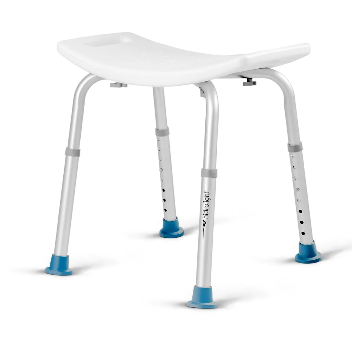 O Banco para Banho Simples Hidrolight é um equipamento de apoio desenvolvido para auxiliar pessoas com limitações de movimento e equilíbrio durante o banho. Fabricado com pés de alumínio leve e anodizado, ponteiras de borracha e assento/encosto de polietileno de alta densidade, possui altura ajustável e apoio de mão, com capacidade para suportar até 130kg.