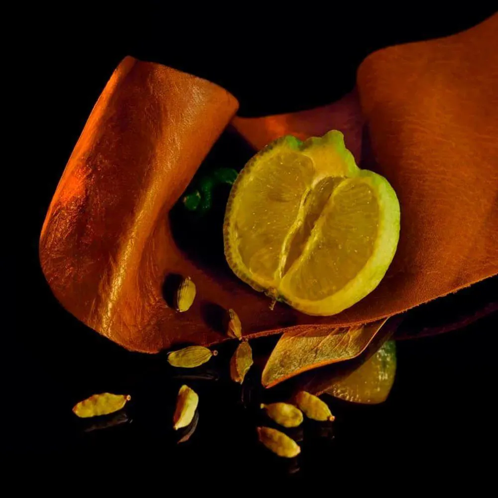 Notas de fundo - Couro, fava tonka, notas amadeiradas